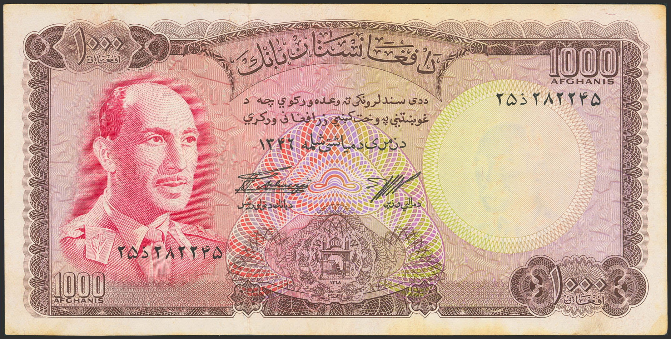 AFGHANISTAN. 1000 Afghanis. 1967. Da Afghanistan Bank. (Pick: 46a). More than Extremely Fine.