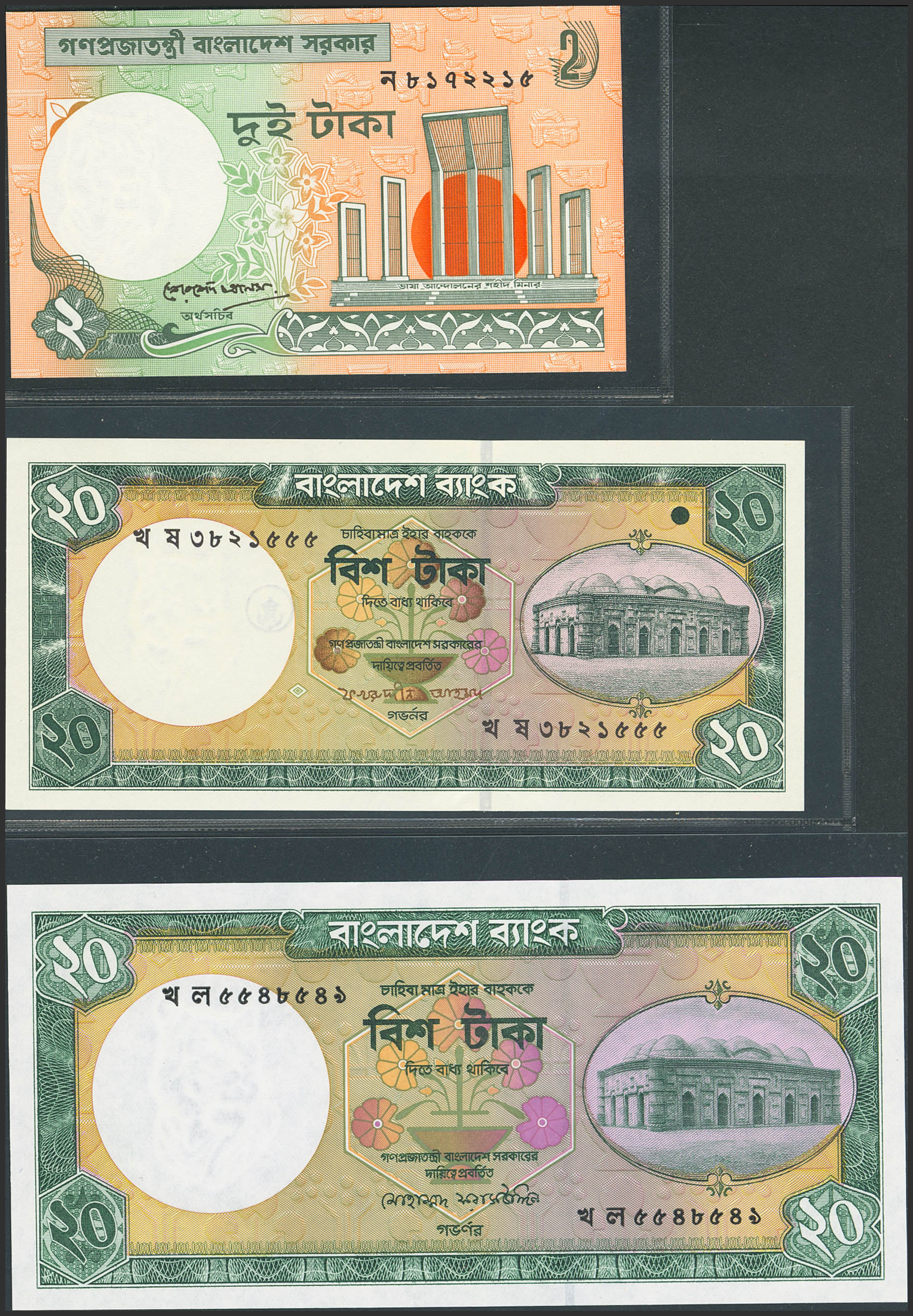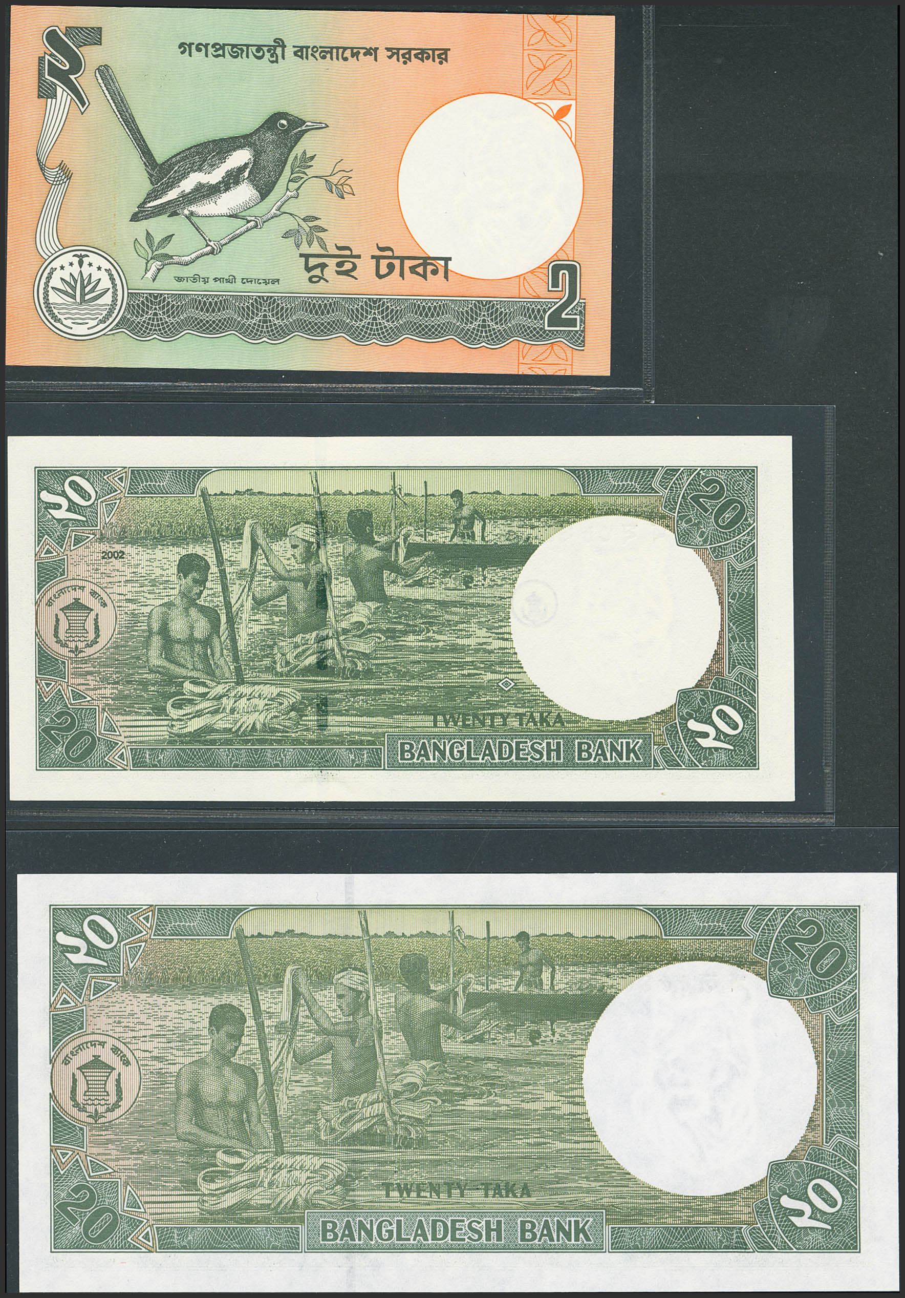 BANGLADESH. Lot of 3 notes of 2 and 20 Taka. 1991 to 2002. People's Republic and Bangladesh Bank. (Pick: 6Ca, 27c, 40a). Uncirculated.