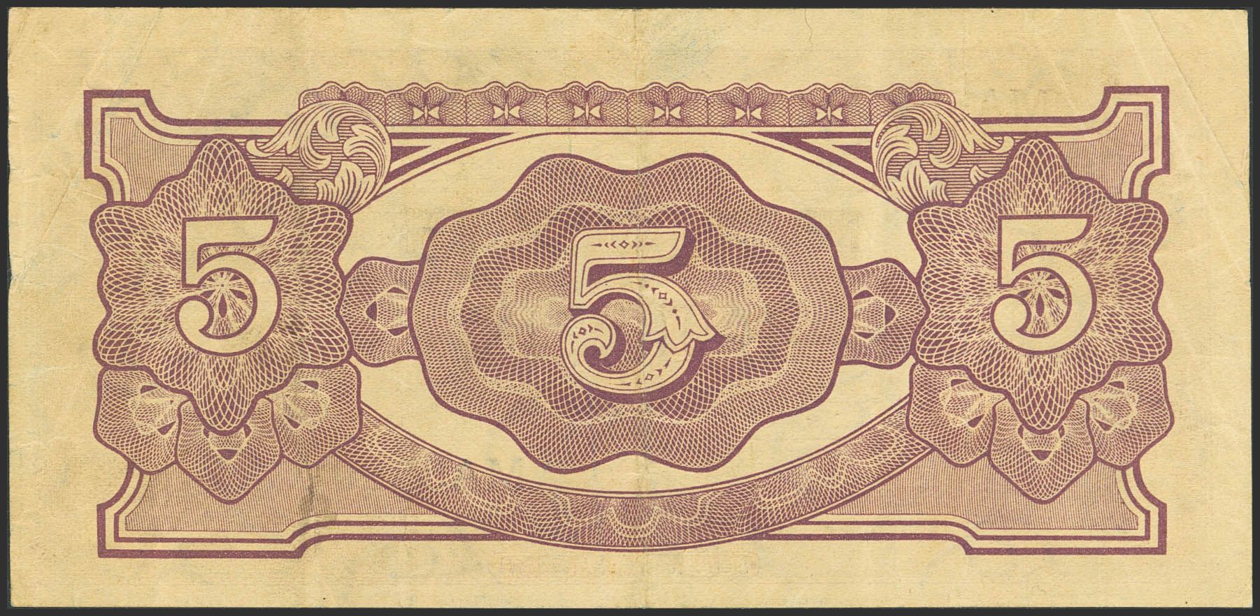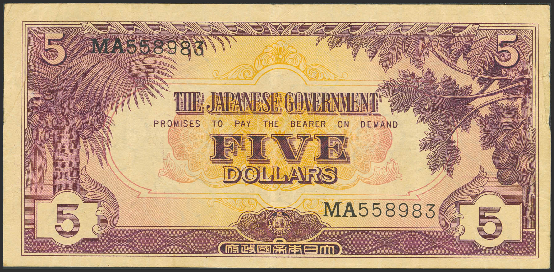 JAPANESE OCCUPATION-MALAYA. 5 Dollars. (1942ca). Japanese Government. (Pick: M5a). More than Very Fine.