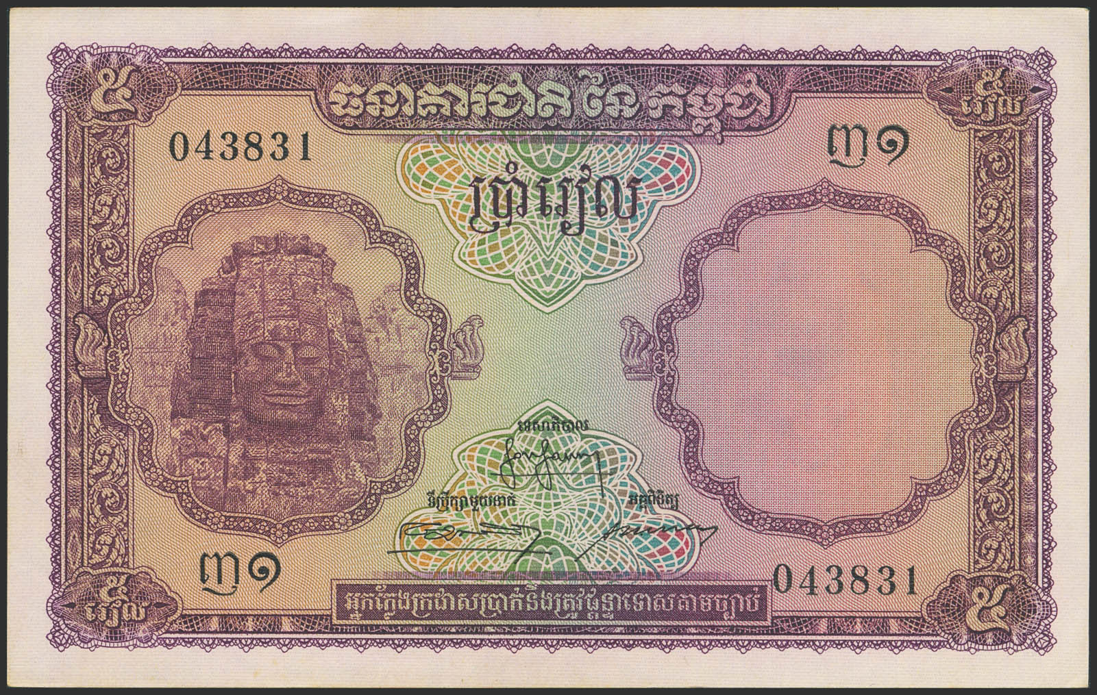 CAMBODIA. 5 Riels. (1955ca). Banque Nationale. (Pick: 2a). About Uncirculated.