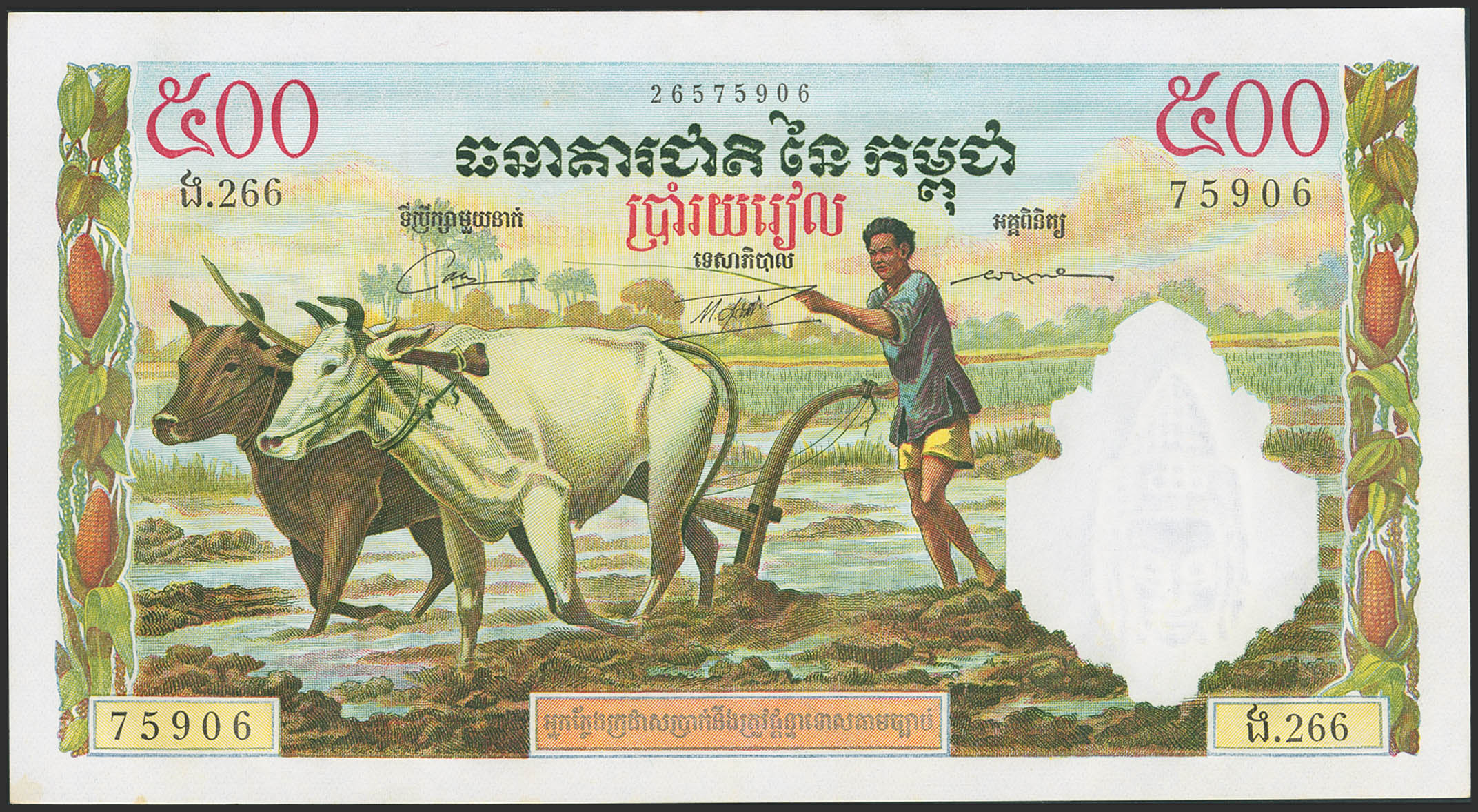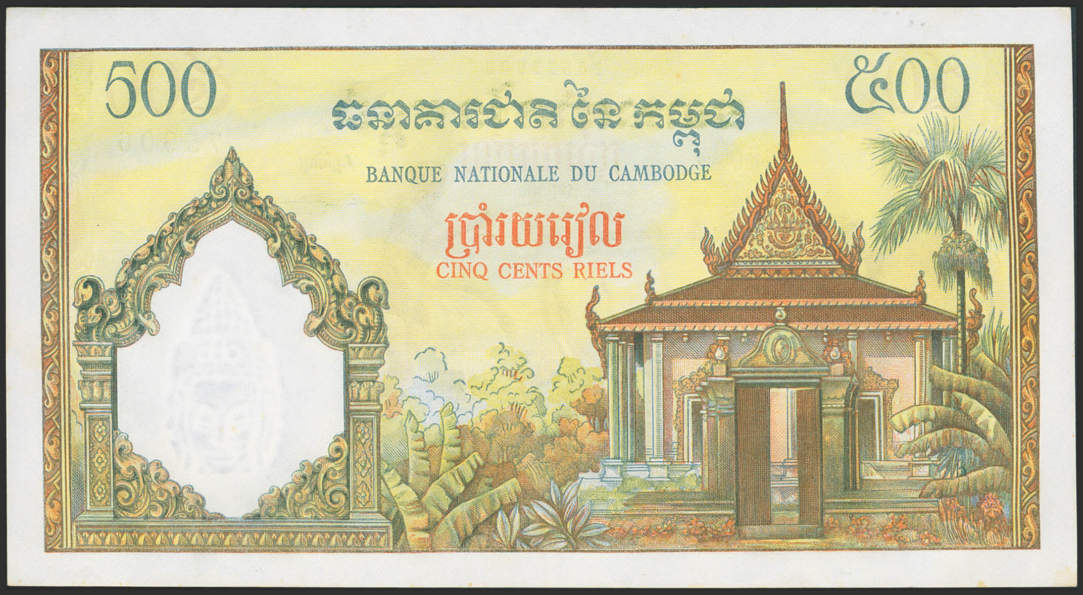 CAMBODIA. 500 Riels. (1958ca). Banque Nationale. (Pick: 14d). Less than Uncirculated.