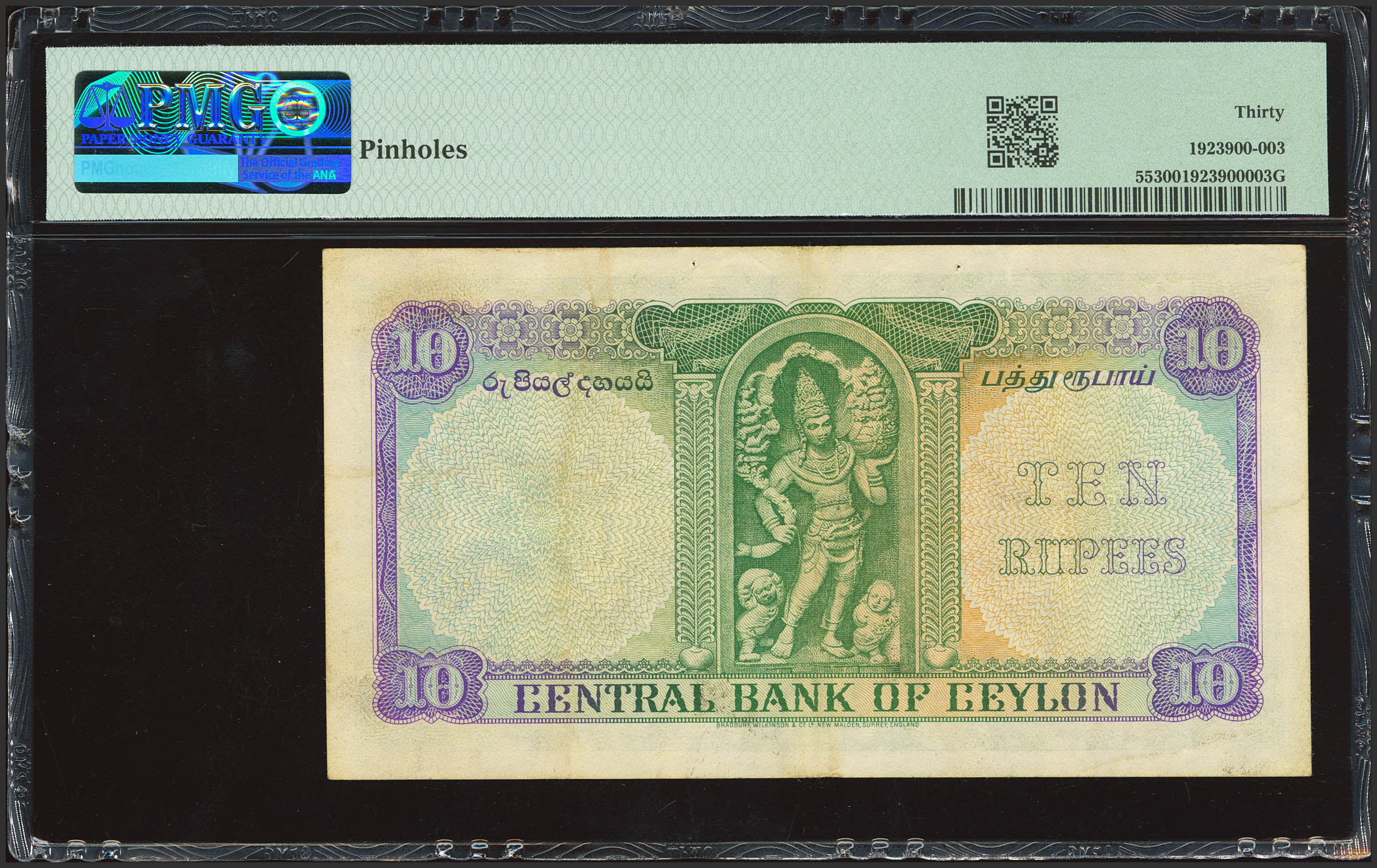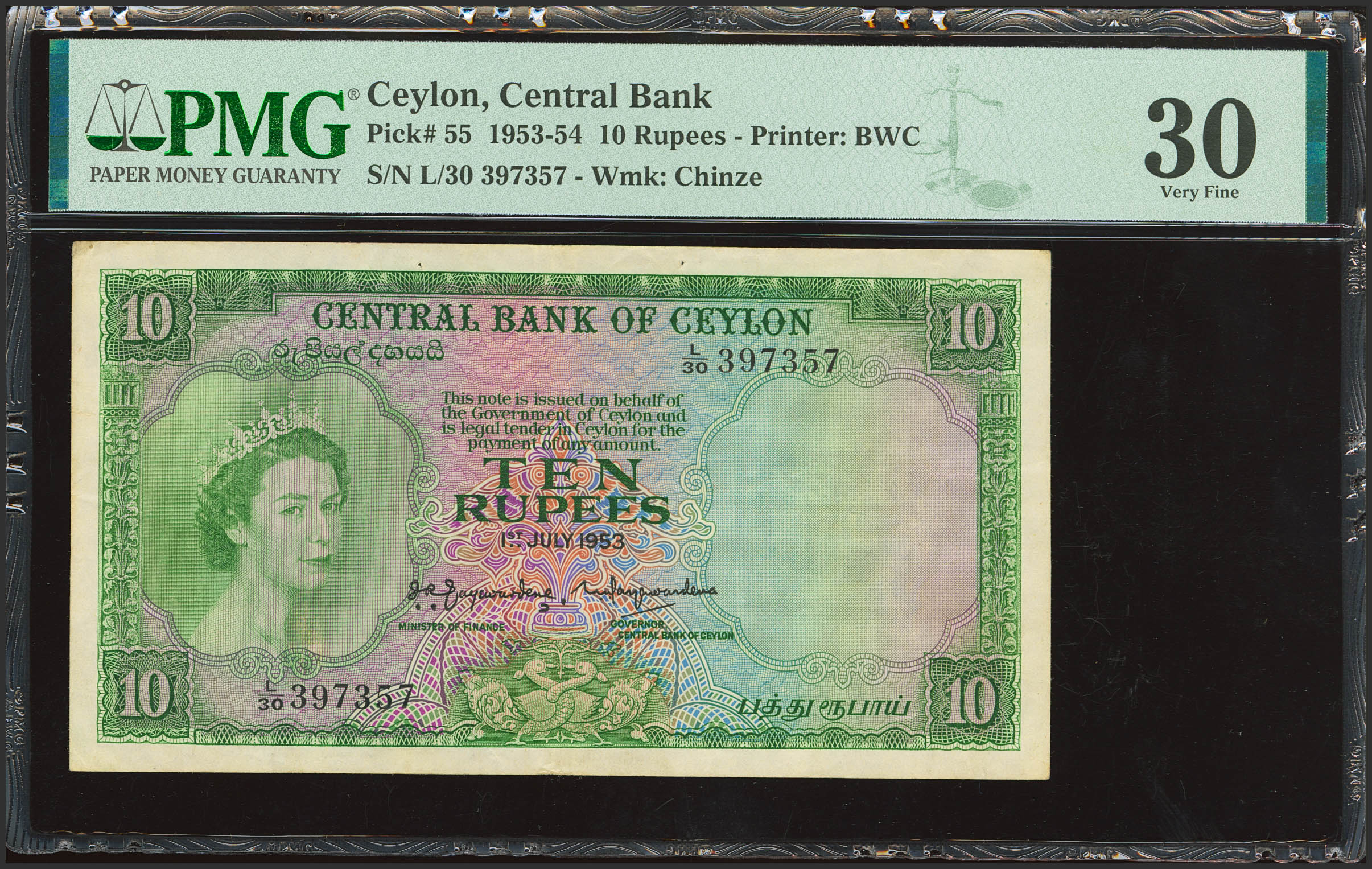 CEYLON. 10 Rupees. 1 July 1953. Central Bank. (Pick: 55). PMG30 (pinholes).