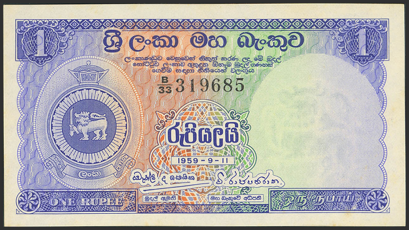 CEYLON. 1 Rupee. 11 September 1959. Central Bank. (Pick: 56c). Uncirculated.