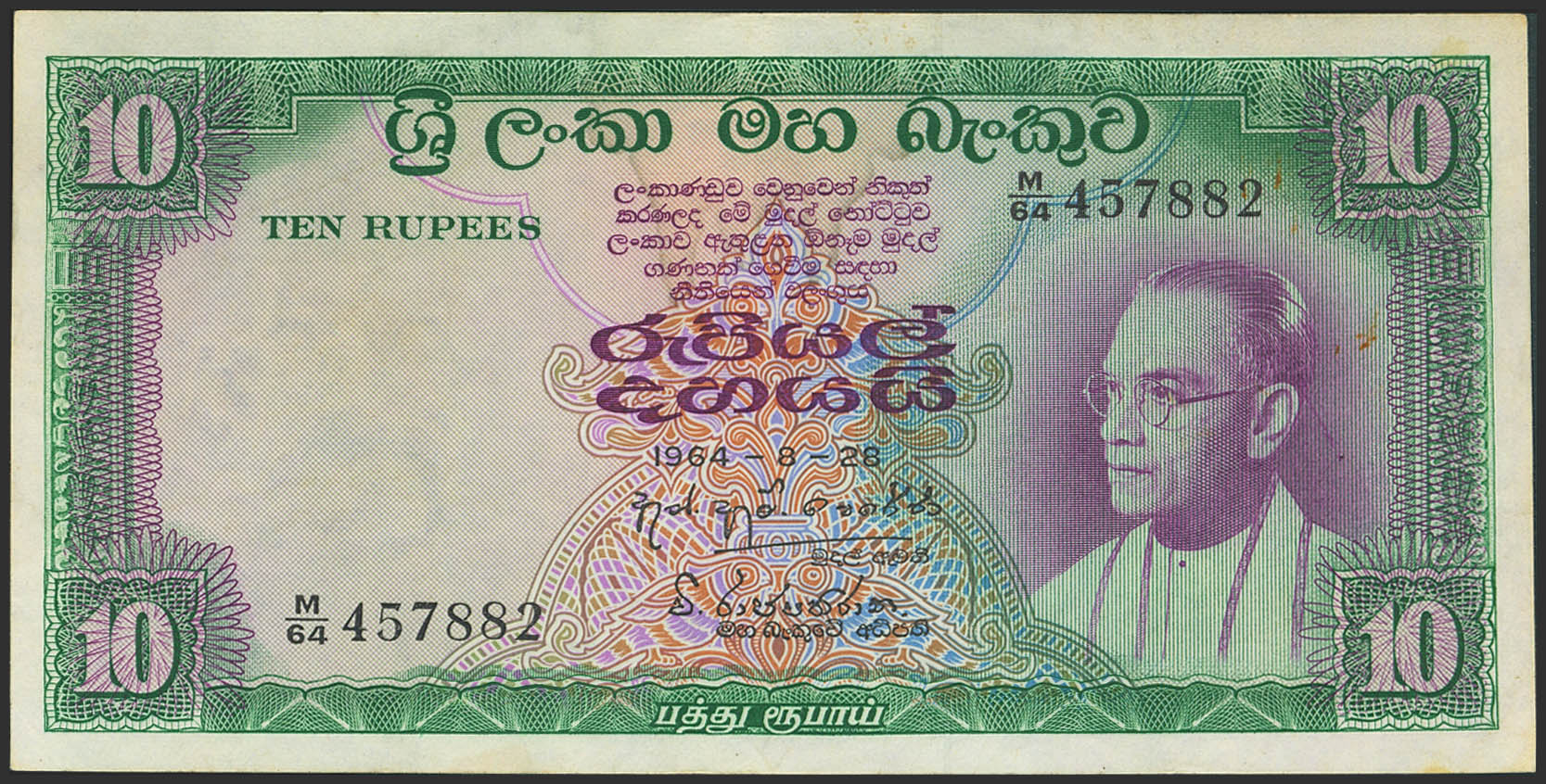 CEYLON. 10 Rupees. 28 August 1964. Central Bank. (Pick: 64). Extremely Fine.