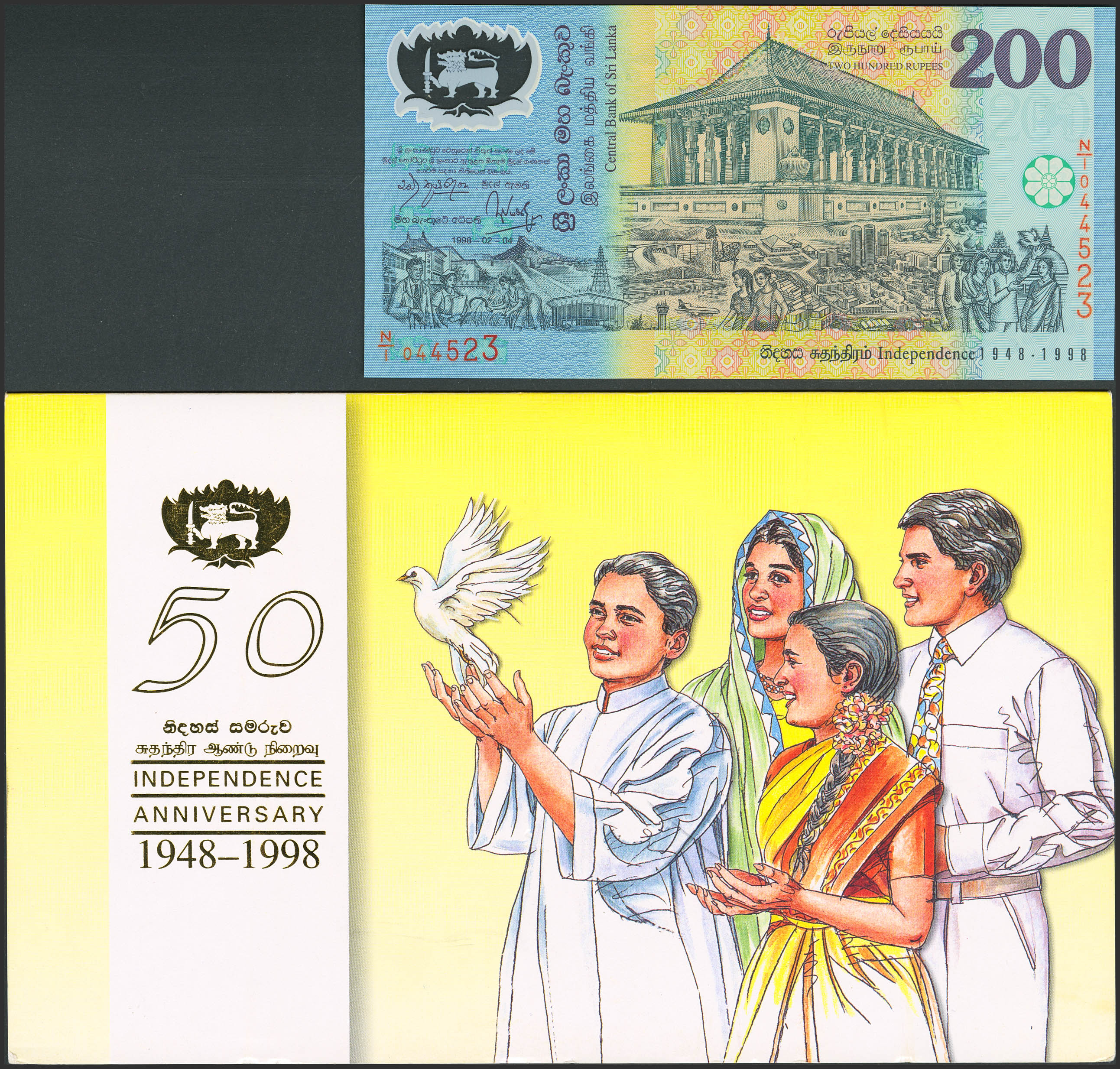 CEYLON-SRI LANKA. 200 Rupees. 4 February 1998. Government. 50th Anniversary of Independence. In official folder. (Pick: 114a). Uncirculated.