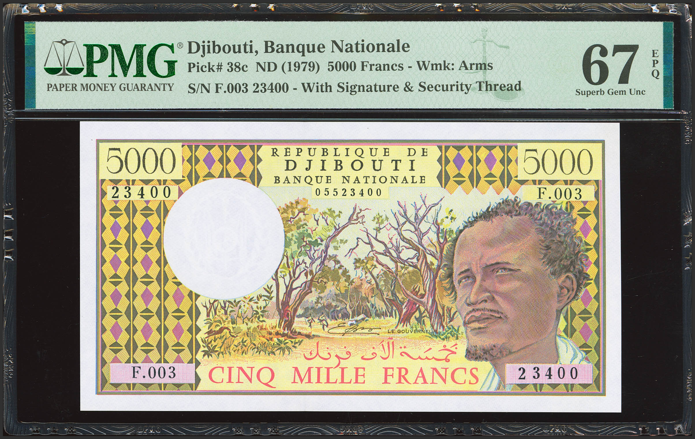DJIBOUTI. 5000 Francs. (1979ca). Banque Nationale. With signature and security thread. (Pick: 38c). PMG67EPQ.