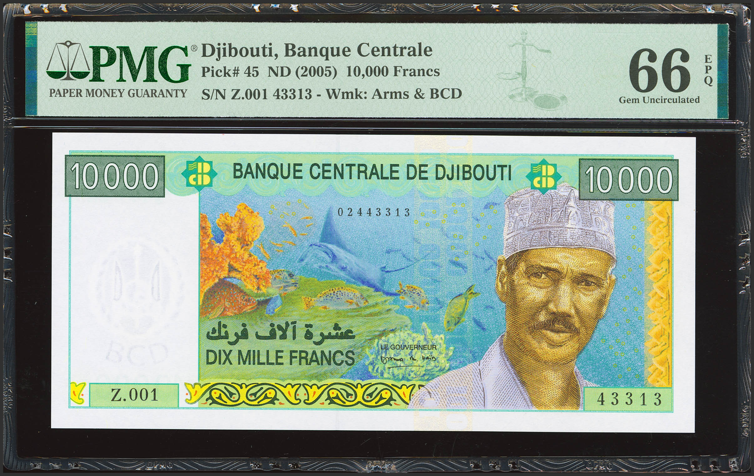 DJIBOUTI. 10000 Francs. (2009ca). Banque Centrale. (Pick: 45). PMG66EPQ.