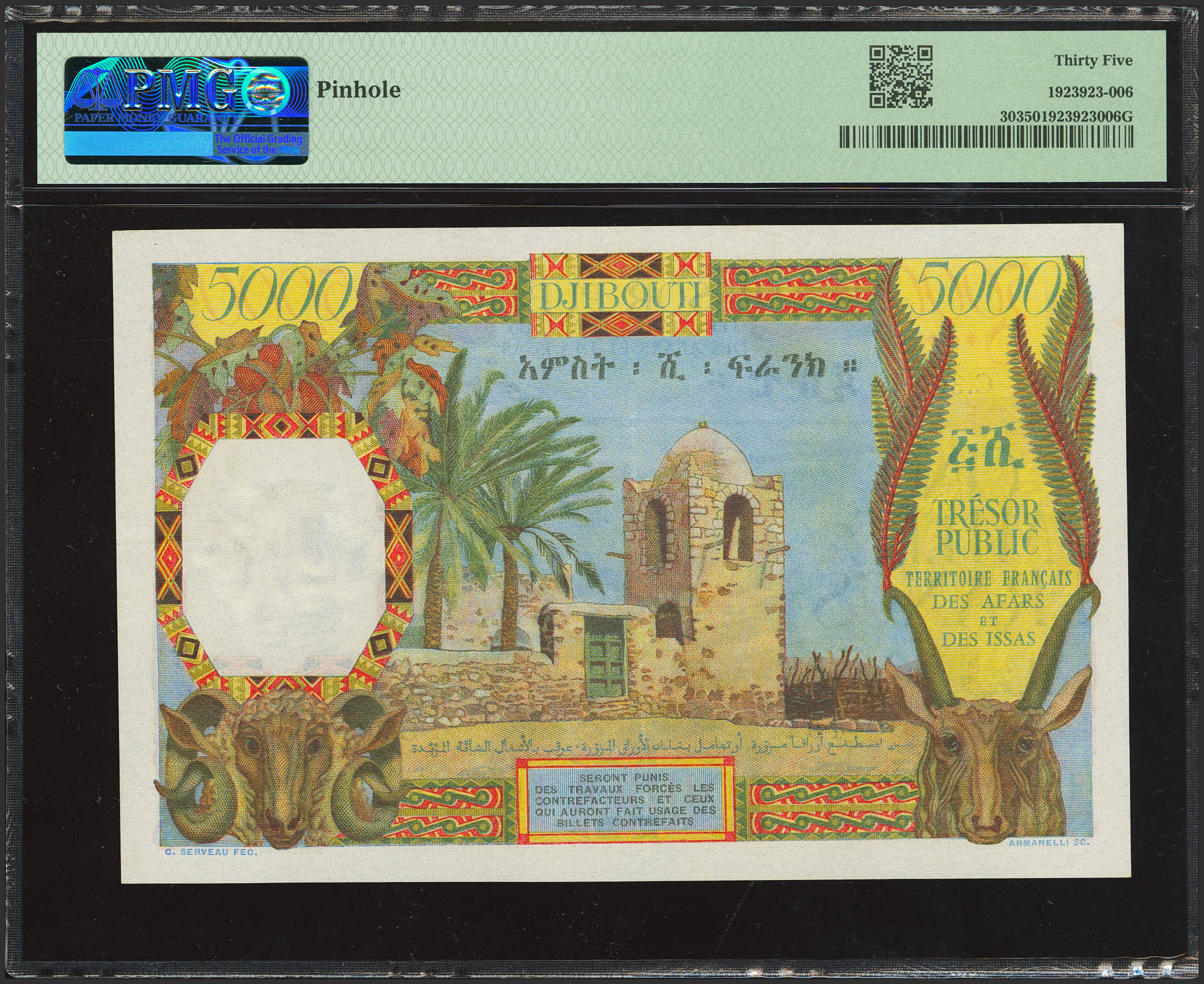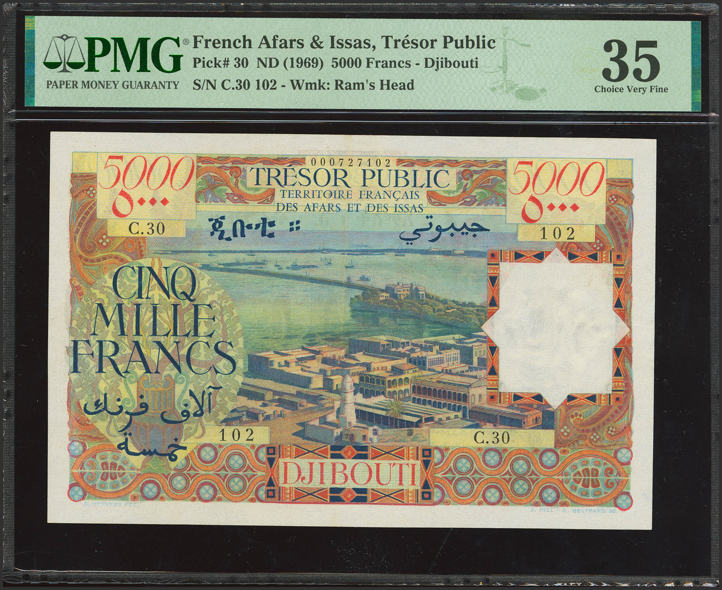 FRENCH AFARS AND ISSAS TERRITORY. 5000 Francs. (1969ca). Trésor Public. Territoire Français des Afars et des Issas. (Pick: 30). PMG35 (pinhole).