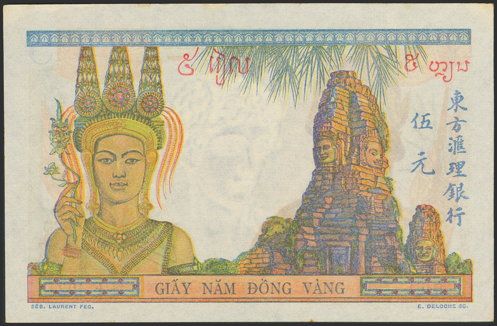 FRENCH INDOCHINA. 5 Piastres. (1936ca). Banque de L´Indochine. (Pick: 55d). Less than Uncirculated.