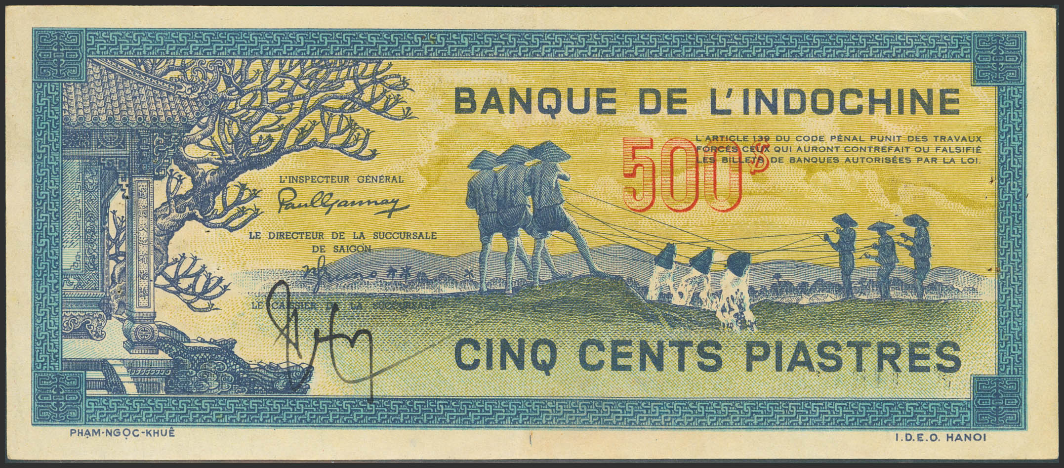 FRENCH INDOCHINA. 500 Piastres. (1944ca). Banque de L´Indochine. (Pick: 68). Extremely Fine, pinholes.