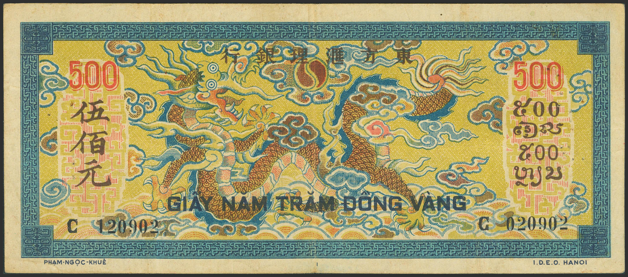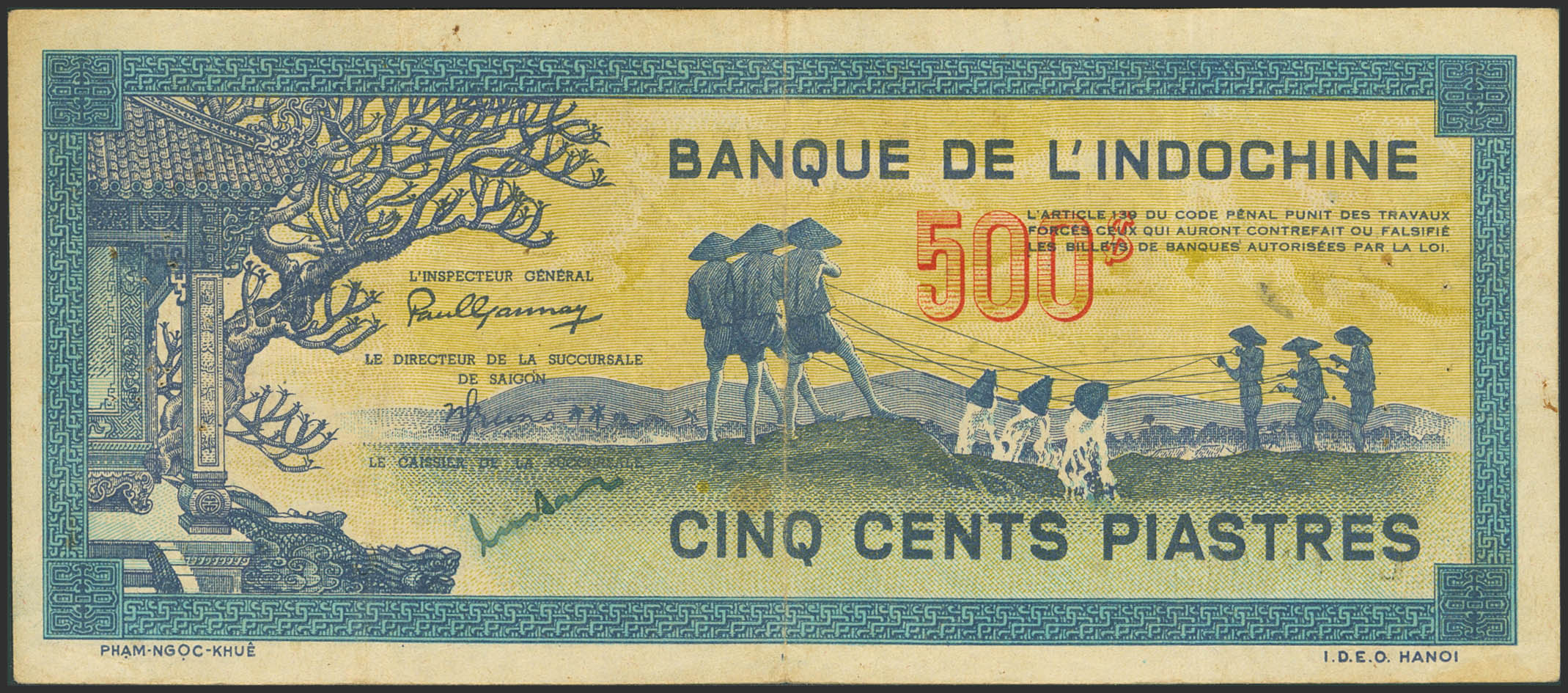 FRENCH INDOCHINA. 500 Piastres. (1944ca). Banque de L´Indochine. (Pick: 68). Very Fine, pinholes.