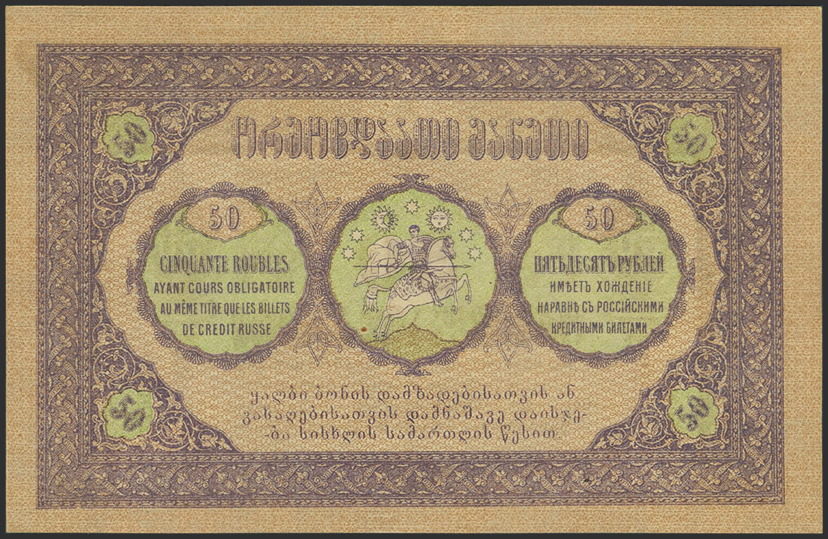 GEORGIA. 50 Roubles. 1919. Georgian Republic. (Pick: 11). Count mark. Less than Uncirculated.