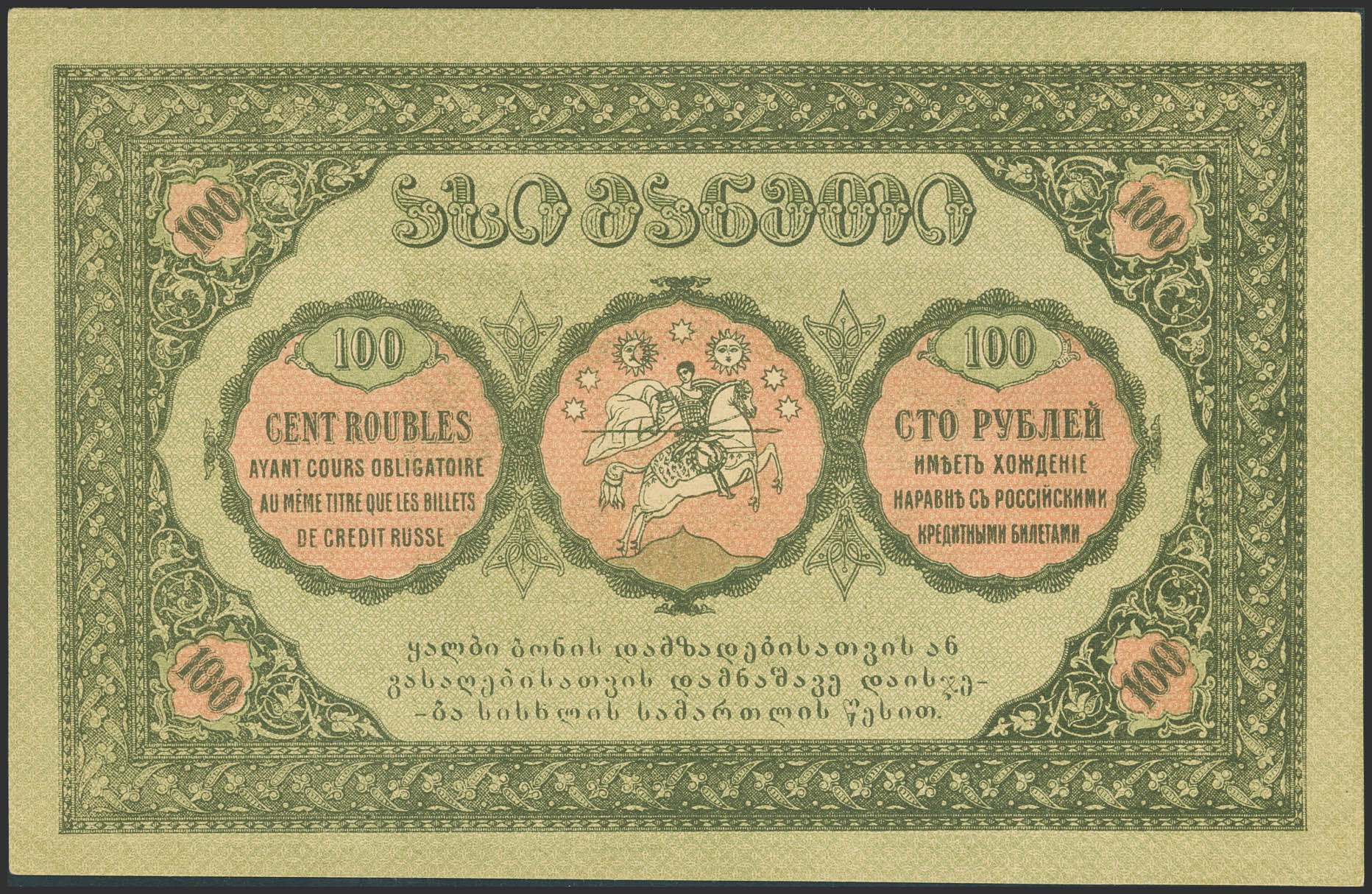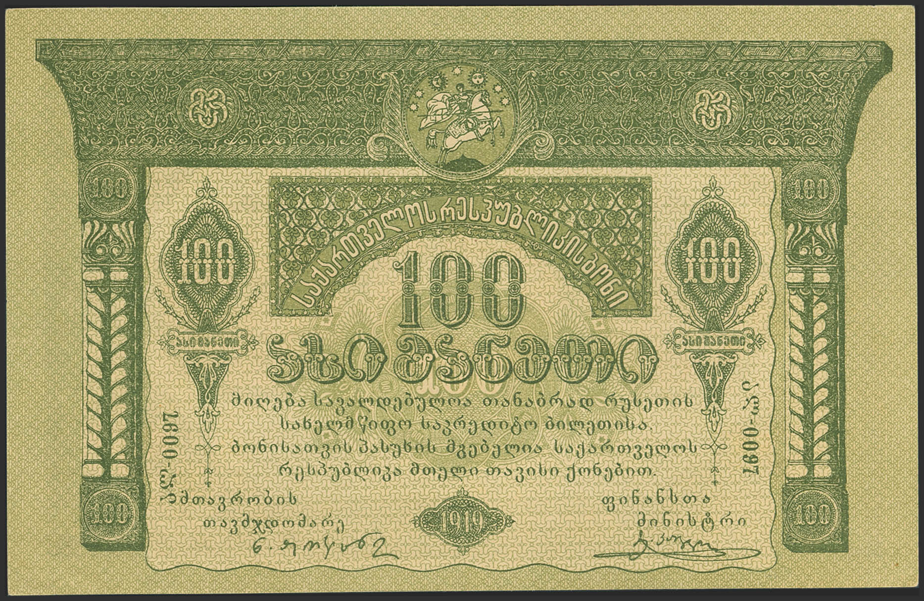GEORGIA. 100 Maneti. 1919. Georgian Republic. (Pick: 12). Less than Uncirculated.