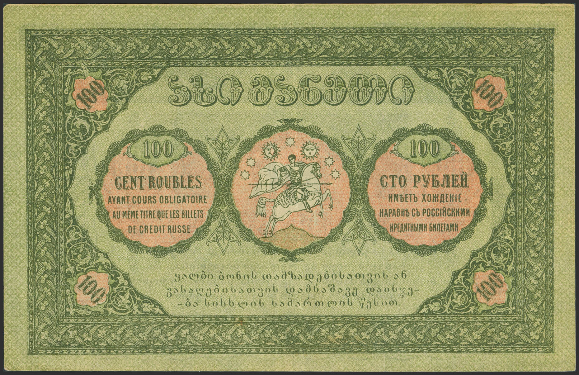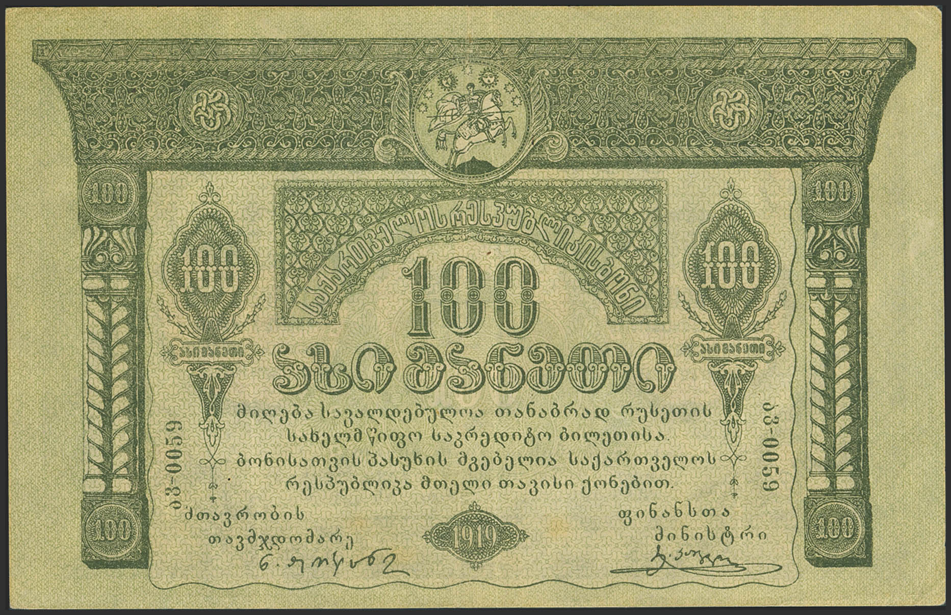 GEORGIA. 100 Maneti. 1919. Georgian Republic. (Pick: 12). More than Extremely Fine.
