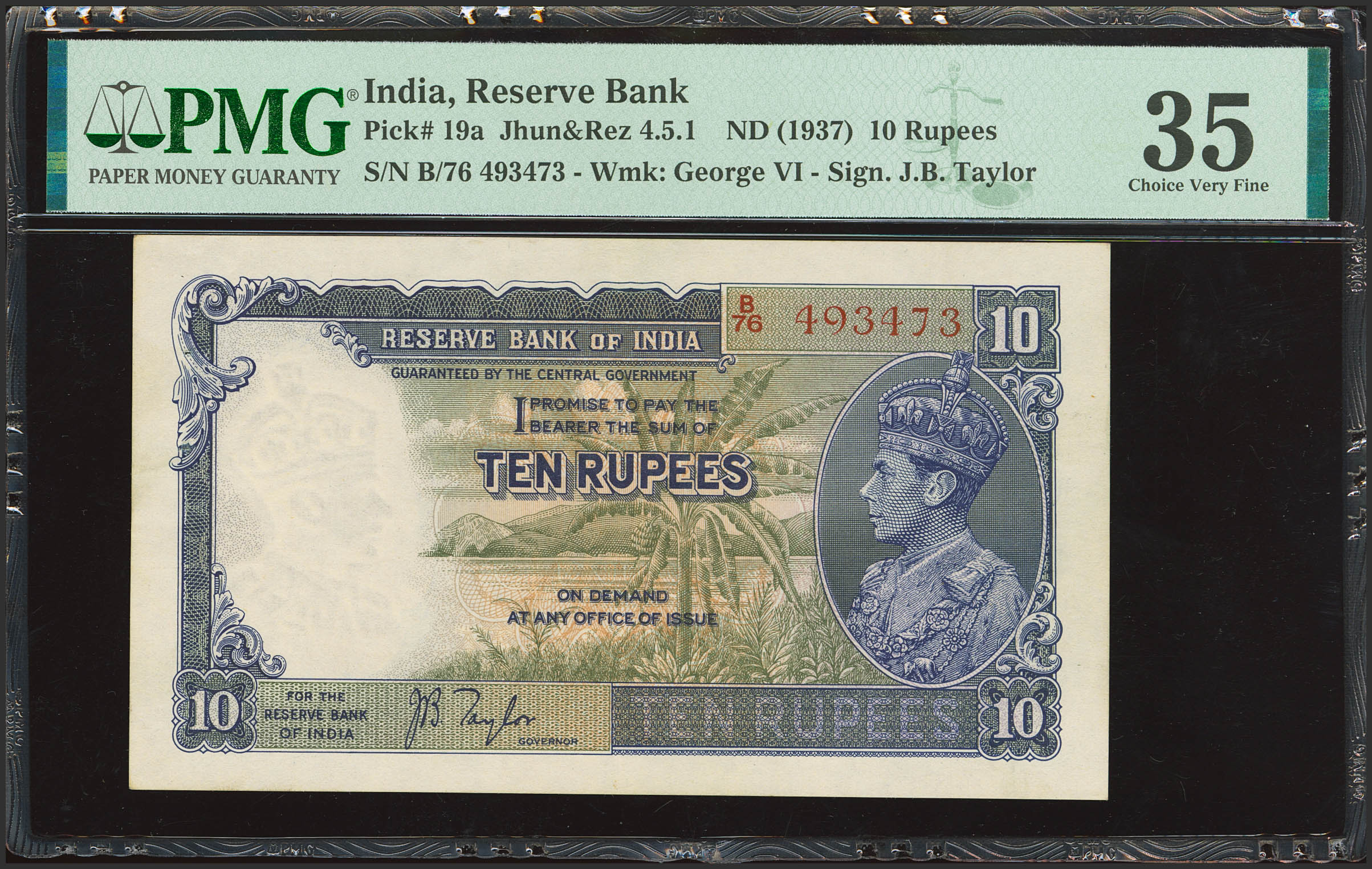 INDIA. 10 Rupees. (1937ca). Reserve Bank. Taylor. (Pick: 19a). PMG35 (staple holes at Issue).