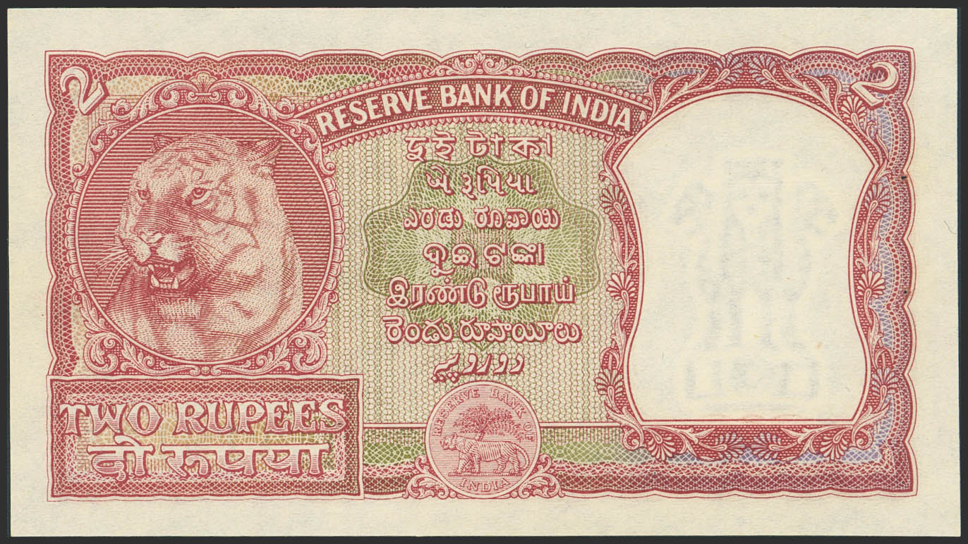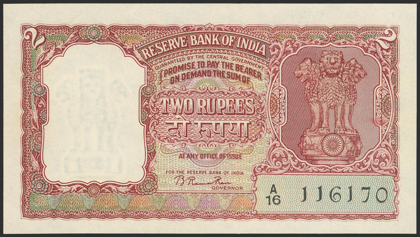 INDIA. 2 Rupees. (1949ca). Reserve Bank. Rama Rau. (Pick: 29a). Uncirculated, staple holes at issue.