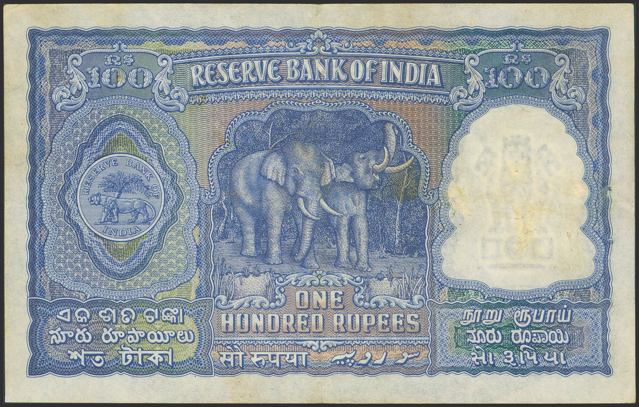 INDIA. 100 Rupees. (1949ca). Reserve Bank. (Pick: 41a). More than Very Fine, restorations.
