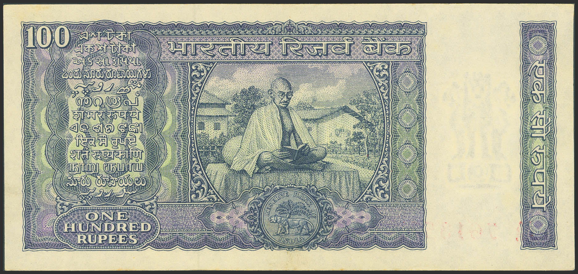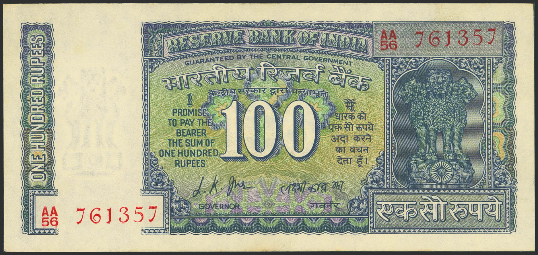 INDIA. 100 Rupees. (1967ca). Reserve Bank. L.K. Jha. (Pick: 62b). About Uncirculated, staple holes at issue.