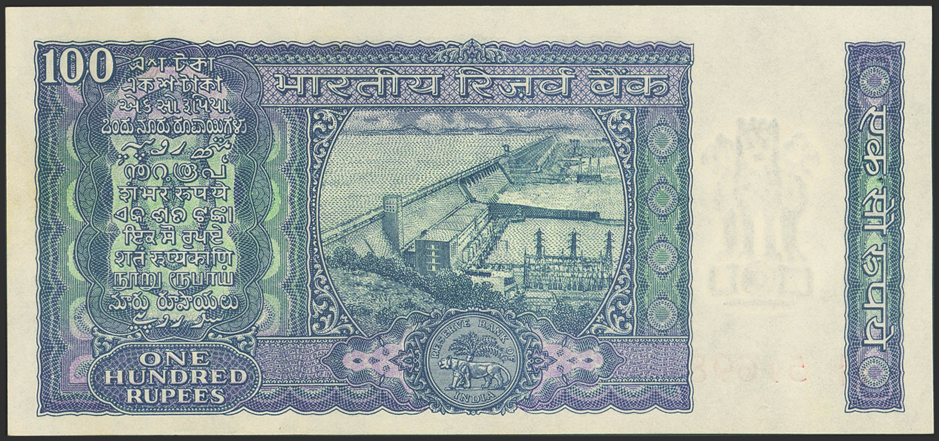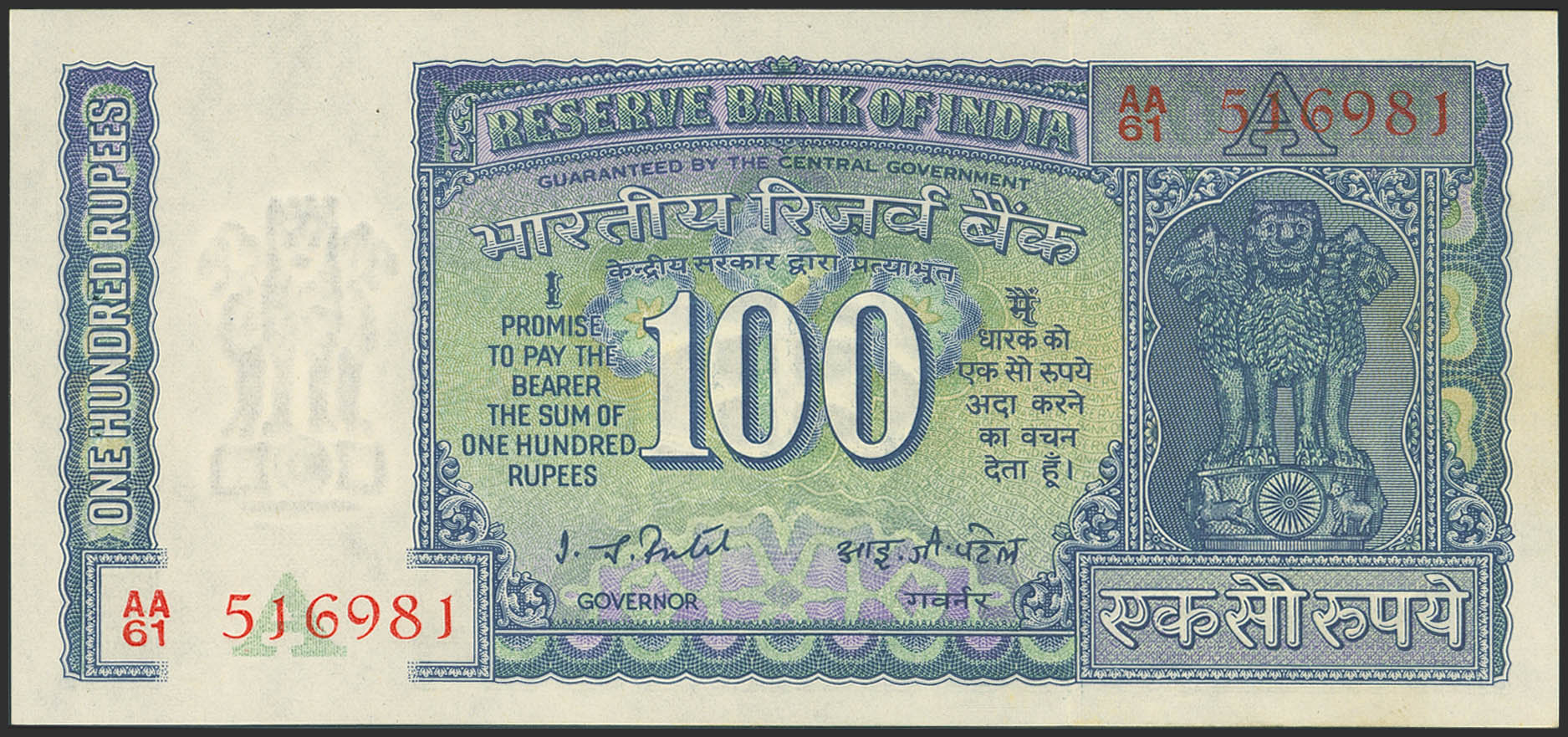 INDIA. 100 Rupees. (1977ca). Reserve Bank. I.G., patel. (Pick: 64d). Uncirculated, staple holes at issue.