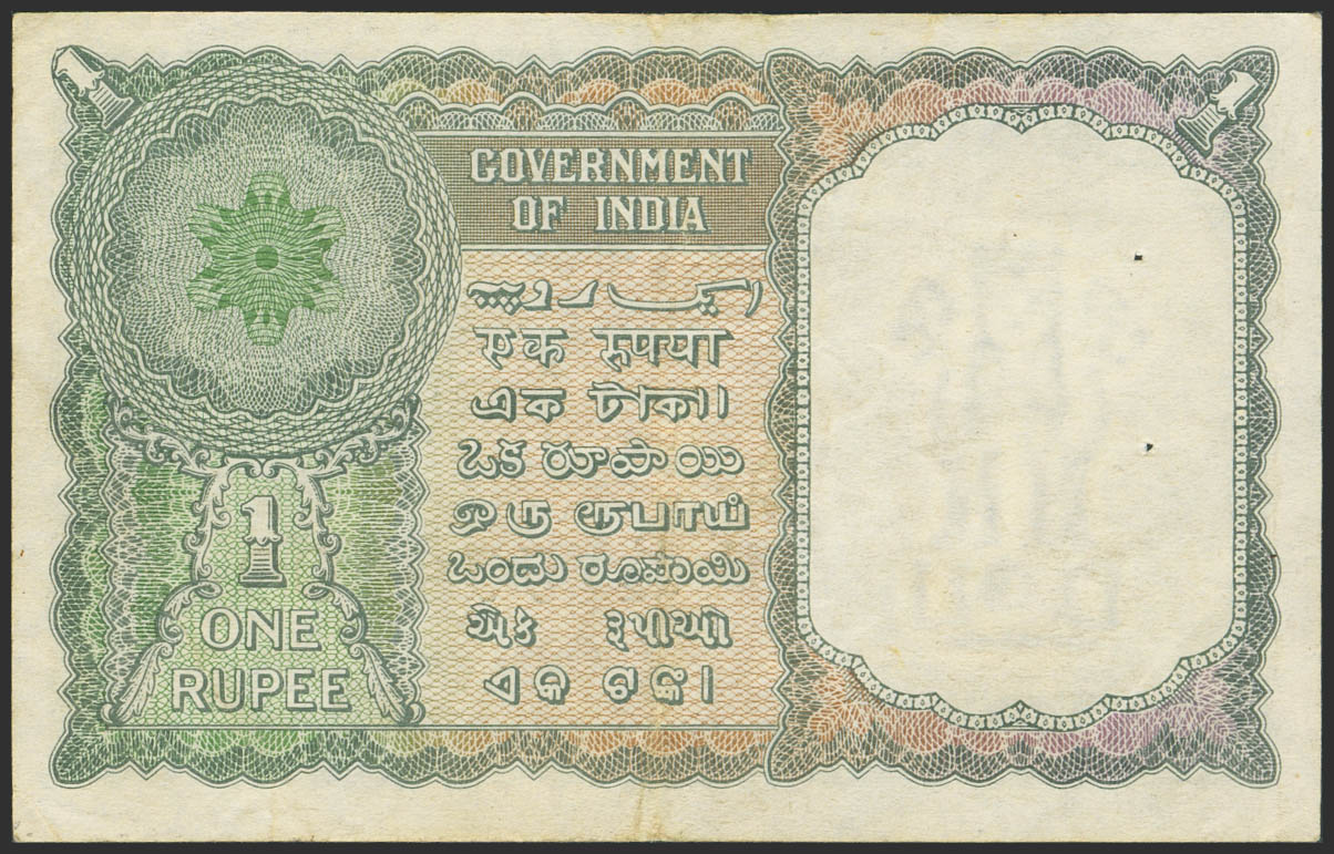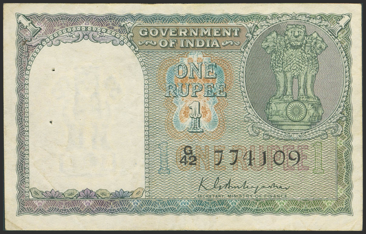INDIA. 1 Rupee. (1949ca). Government. K.G. Ambegaonkar. (Pick: 71b). More than Very Fine, staple holes at Issue.
