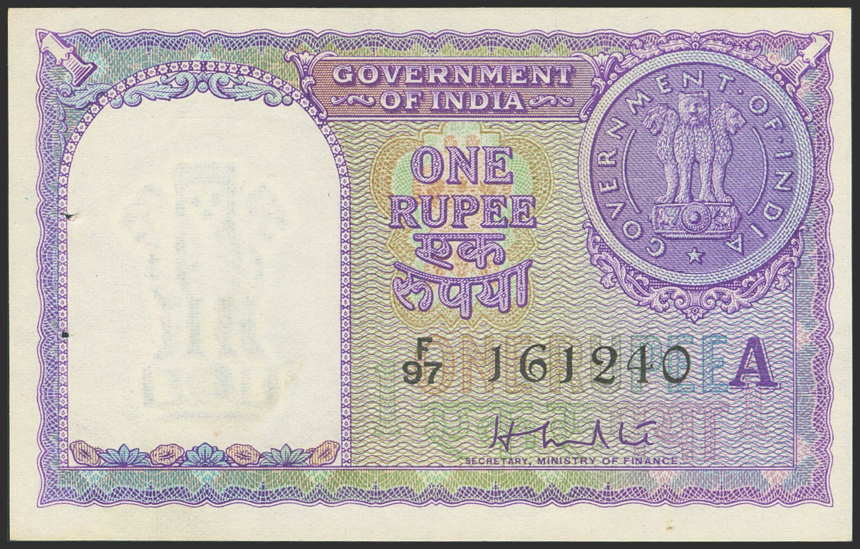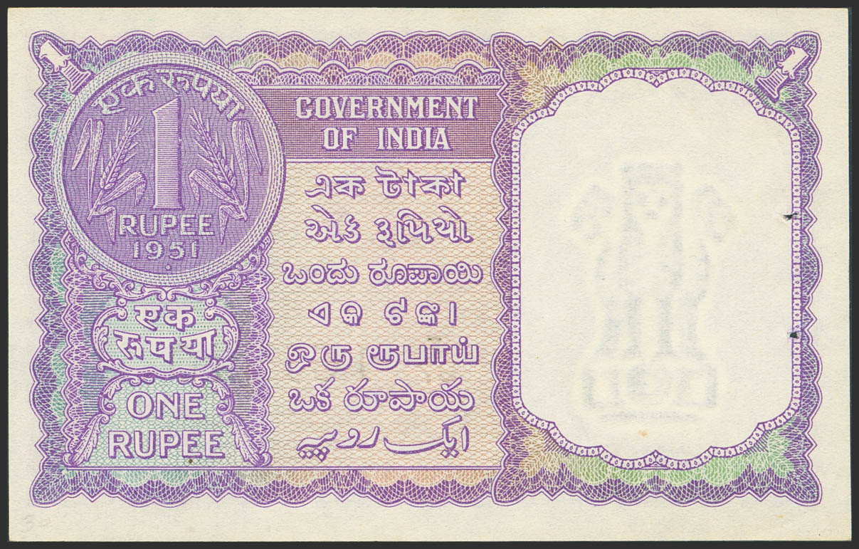 INDIA. 1 Rupee. 1951. Government. H.M, patel. (Pick: 74b). Uncirculated, staple holes at Issue.