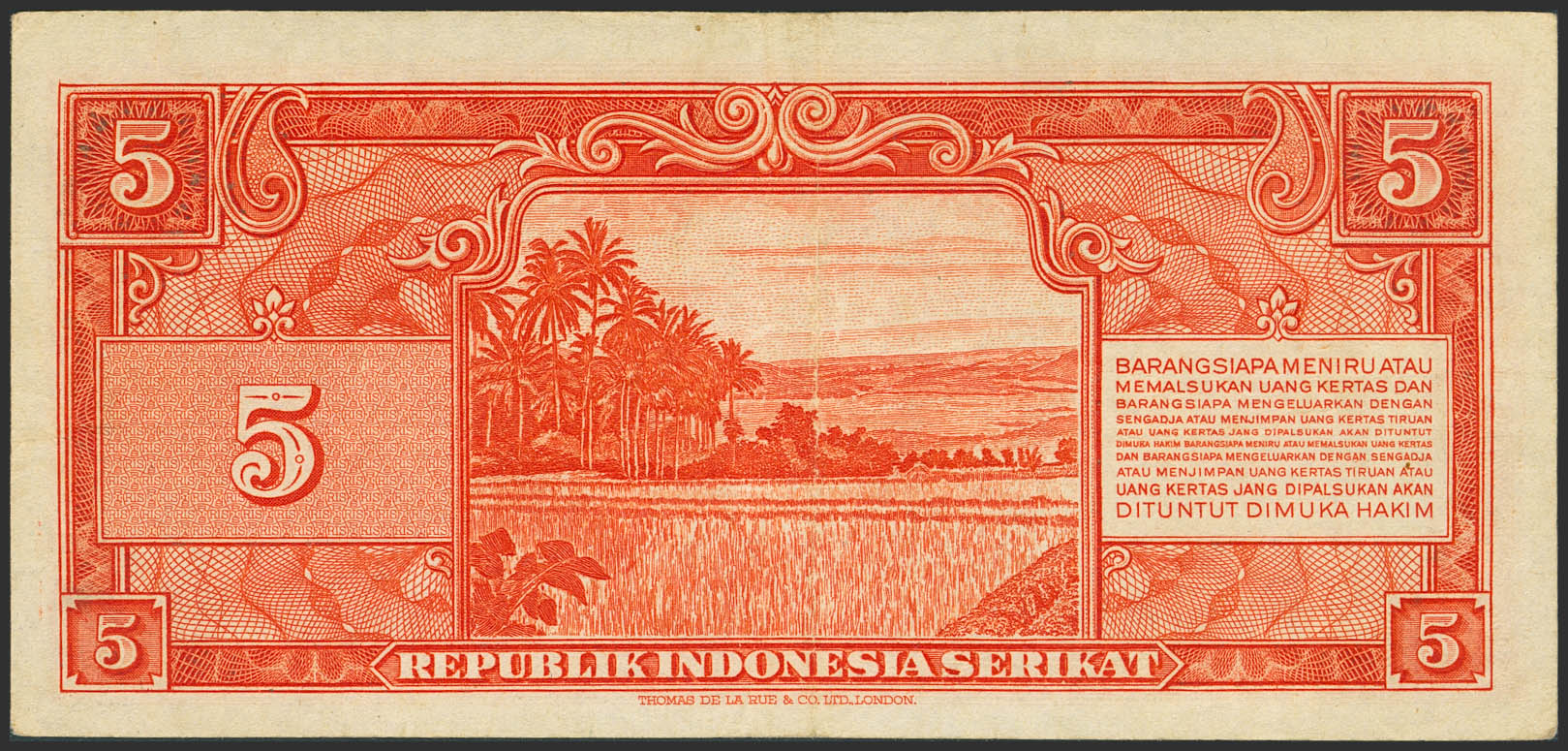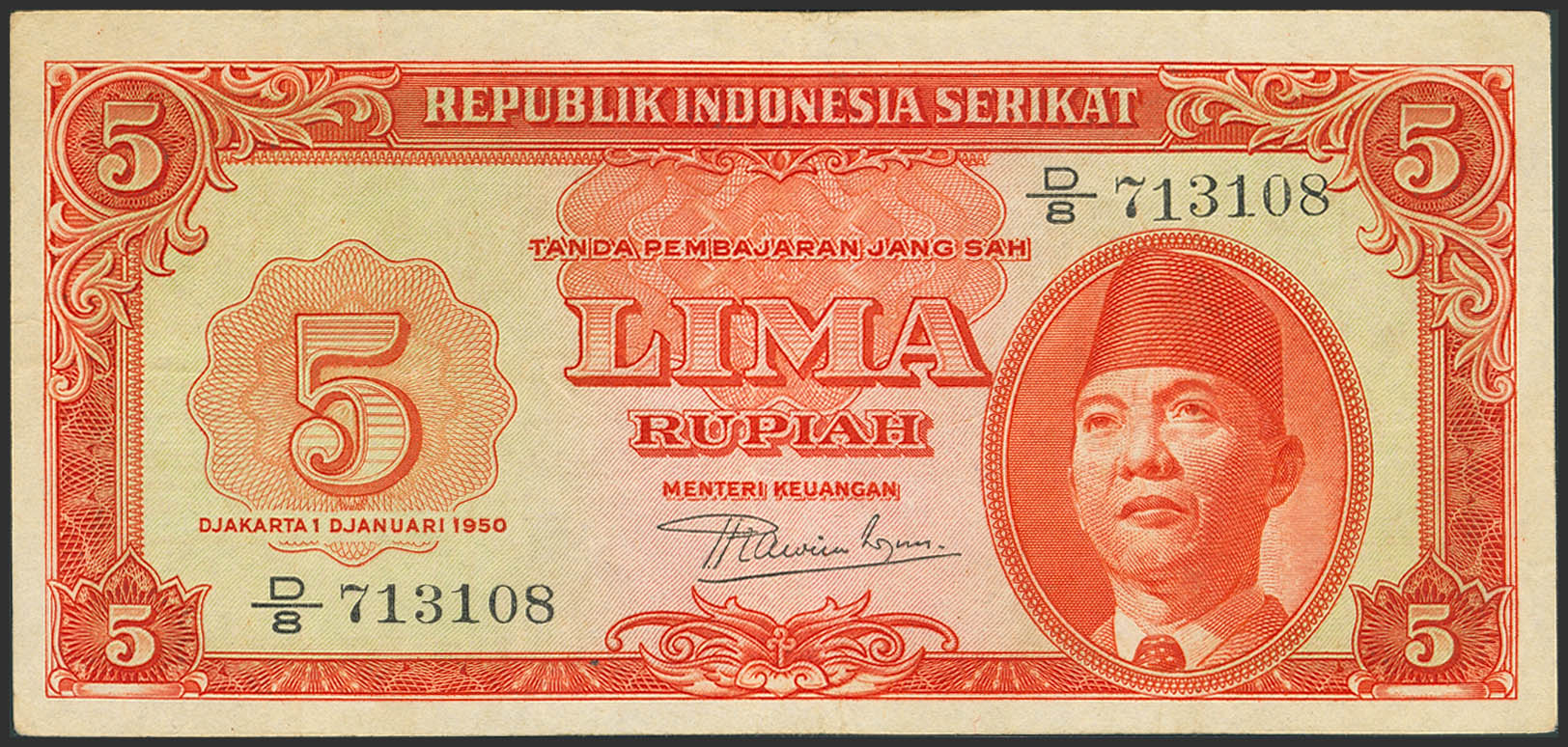 INDONESIA. 5 Rupiah. 1 January 1950. Republik Indonesia Serikat. (Pick: 36). More than Very Fine.