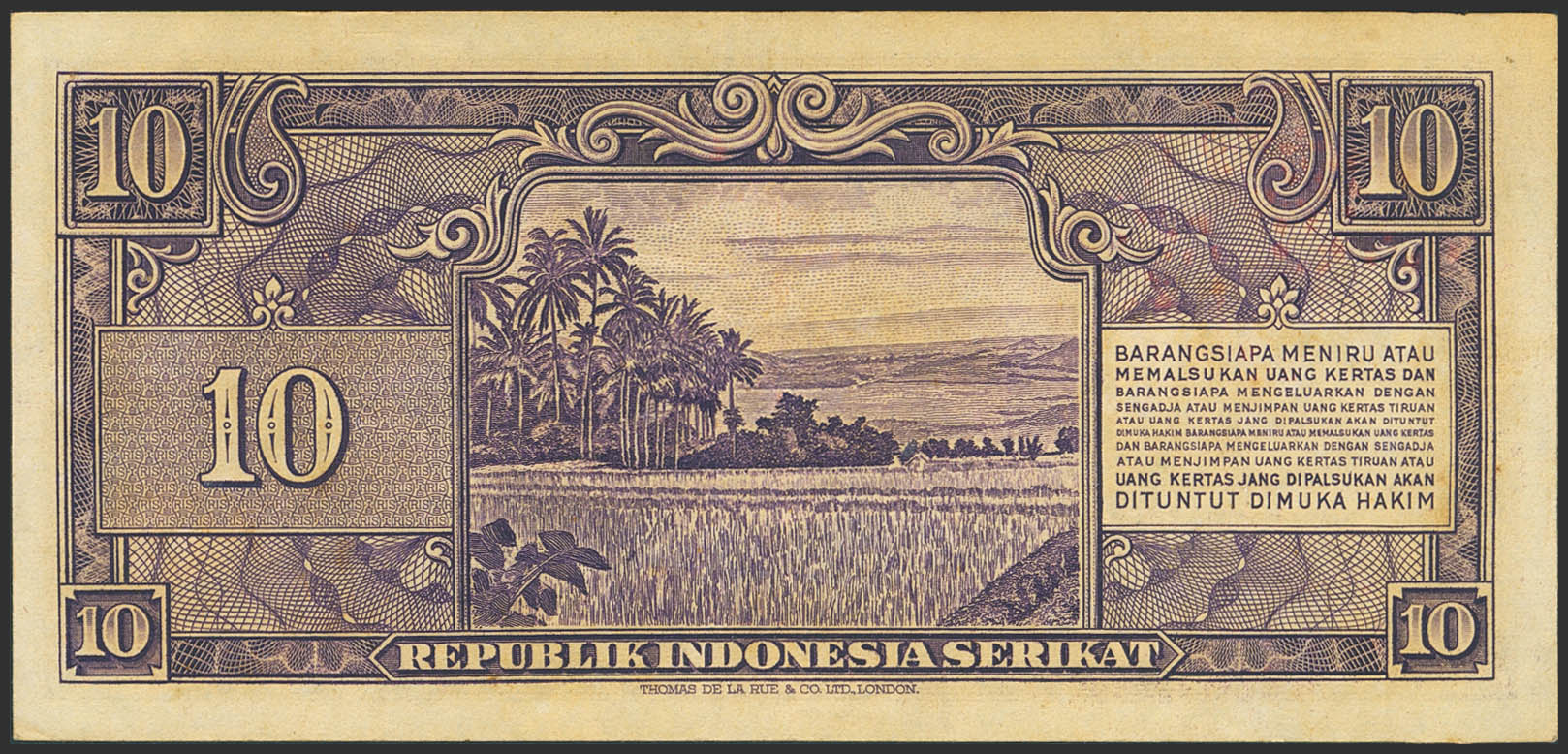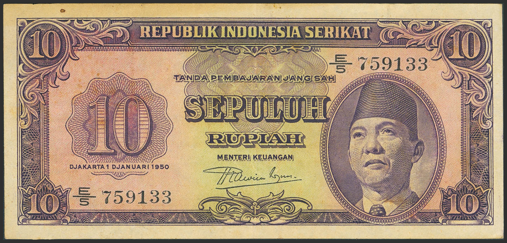 INDONESIA. 10 Rupiah. 1 January 1950. Republik Indonesia Serikat. (Pick: 37). More than Very Fine.