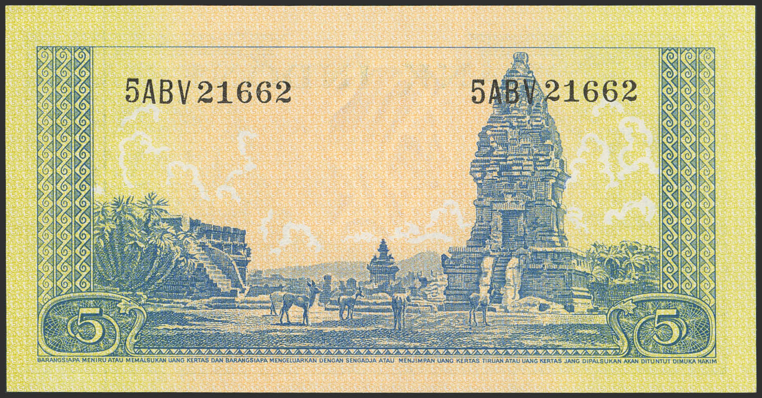 INDONESIA. 5 Rupiah. (1957ca). Bank Indonesia. (Pick: 49). Uncirculated.