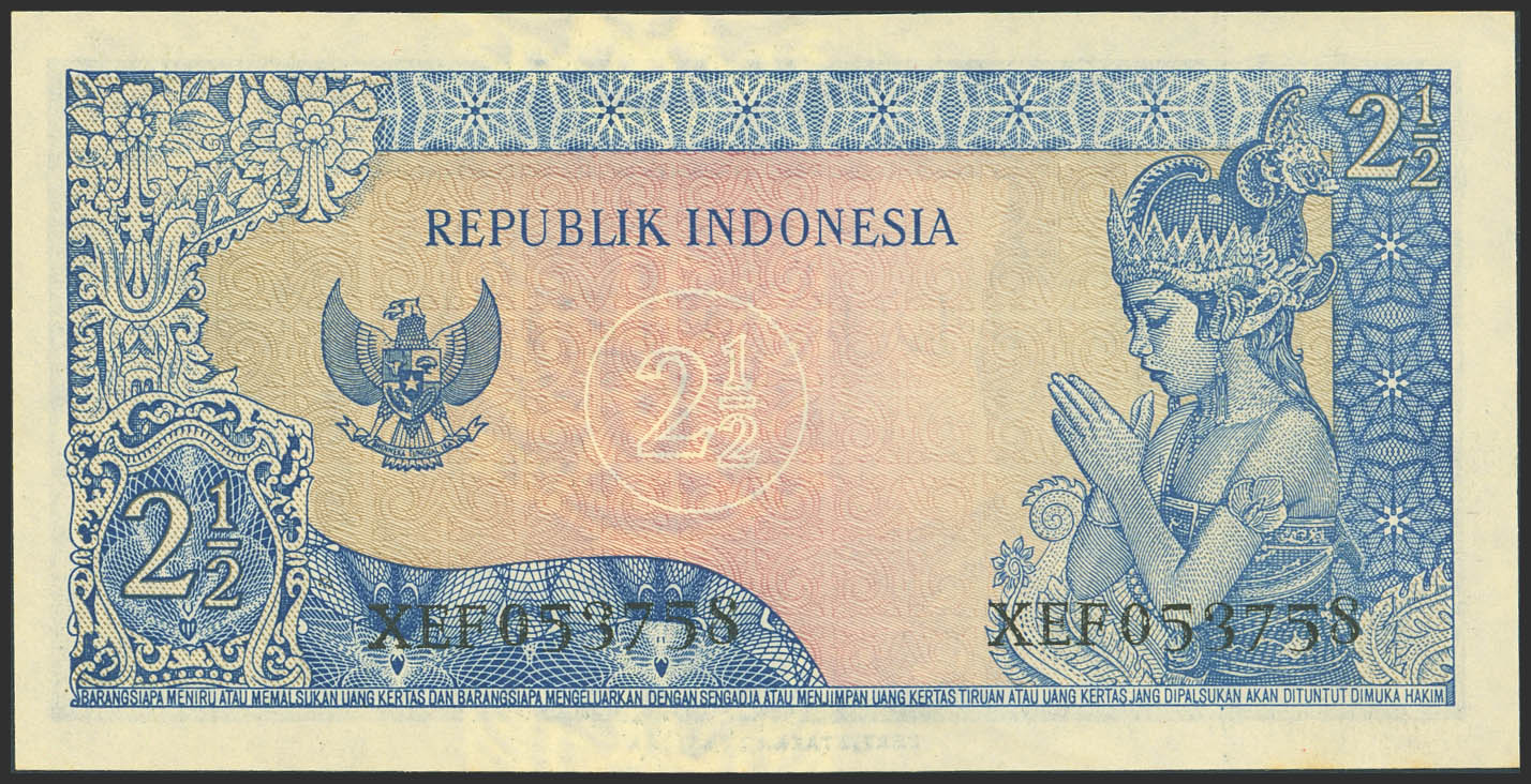 INDONESIA. 2´5 Rupiah. 1964. Republik Indonesia. With Printer’s name. (Pick: 81a). Uncirculated.