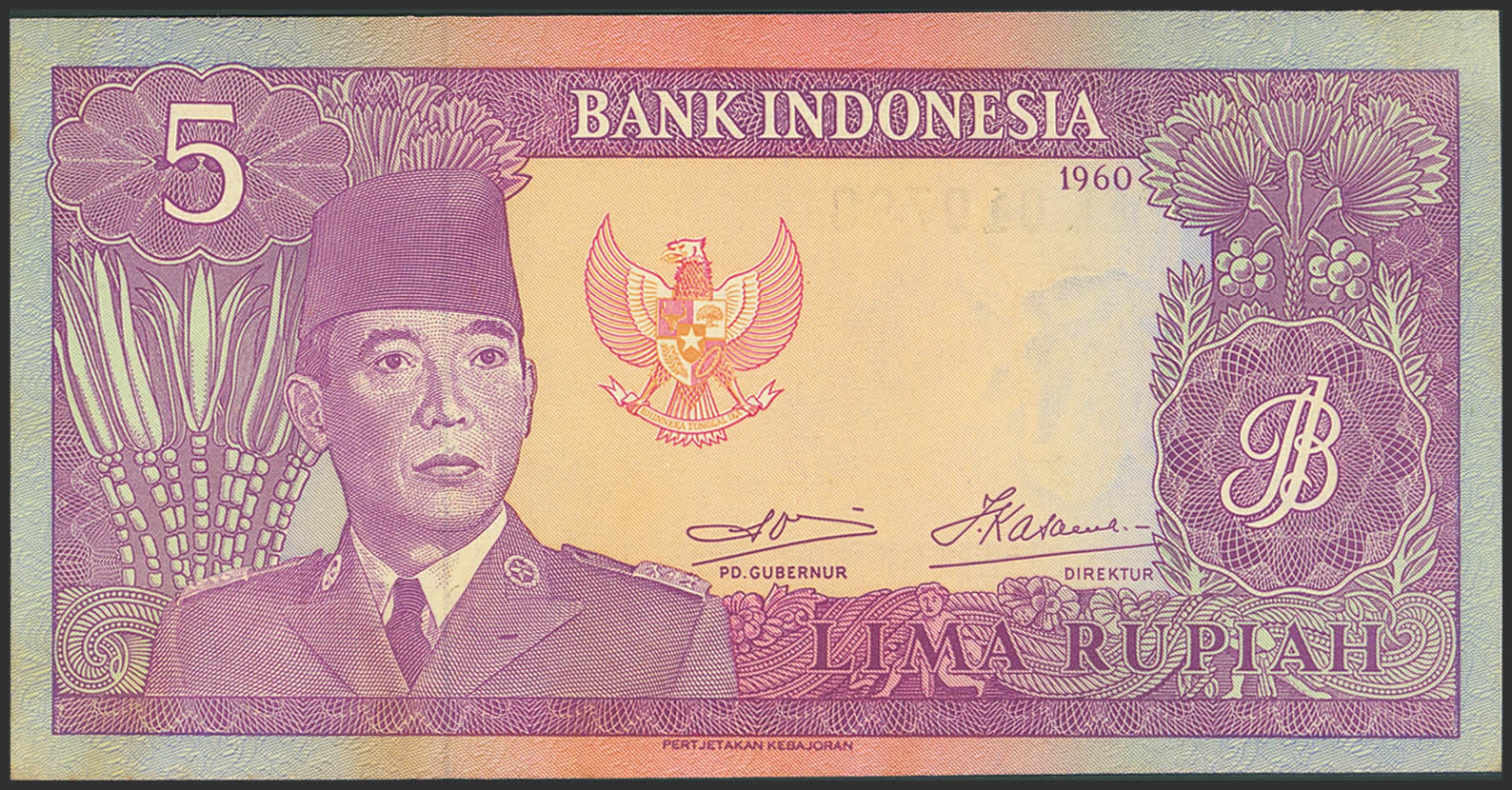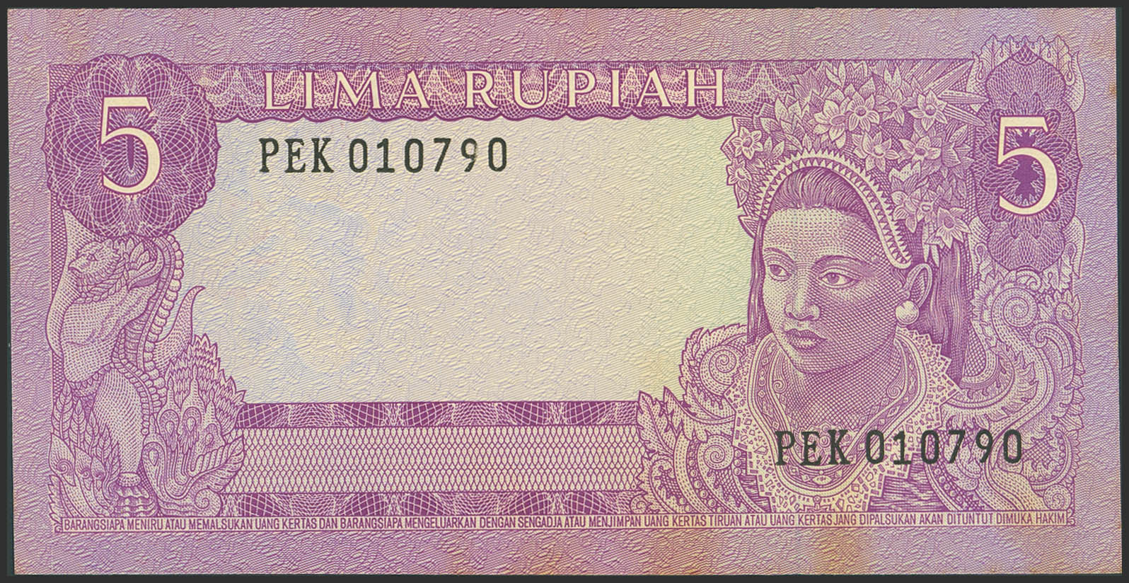 INDONESIA. 5 Rupiah. 1960. Bank Indonesia. Buffalo watermark. (Pick: 82b). Uncirculated.