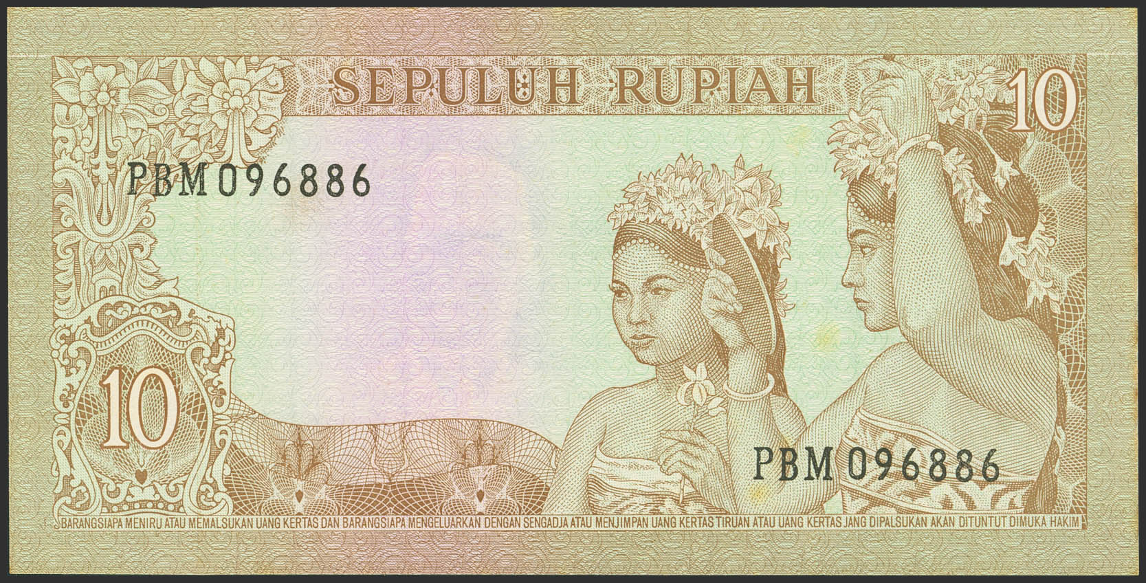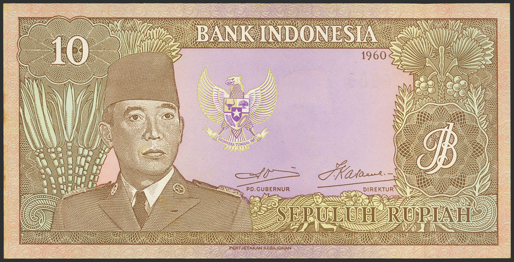 INDONESIA. 10 Tupiah. 1960. Bank Indonesia, printed by Pertjetakan Kebajoran. (Pick: 83). Uncirculated.