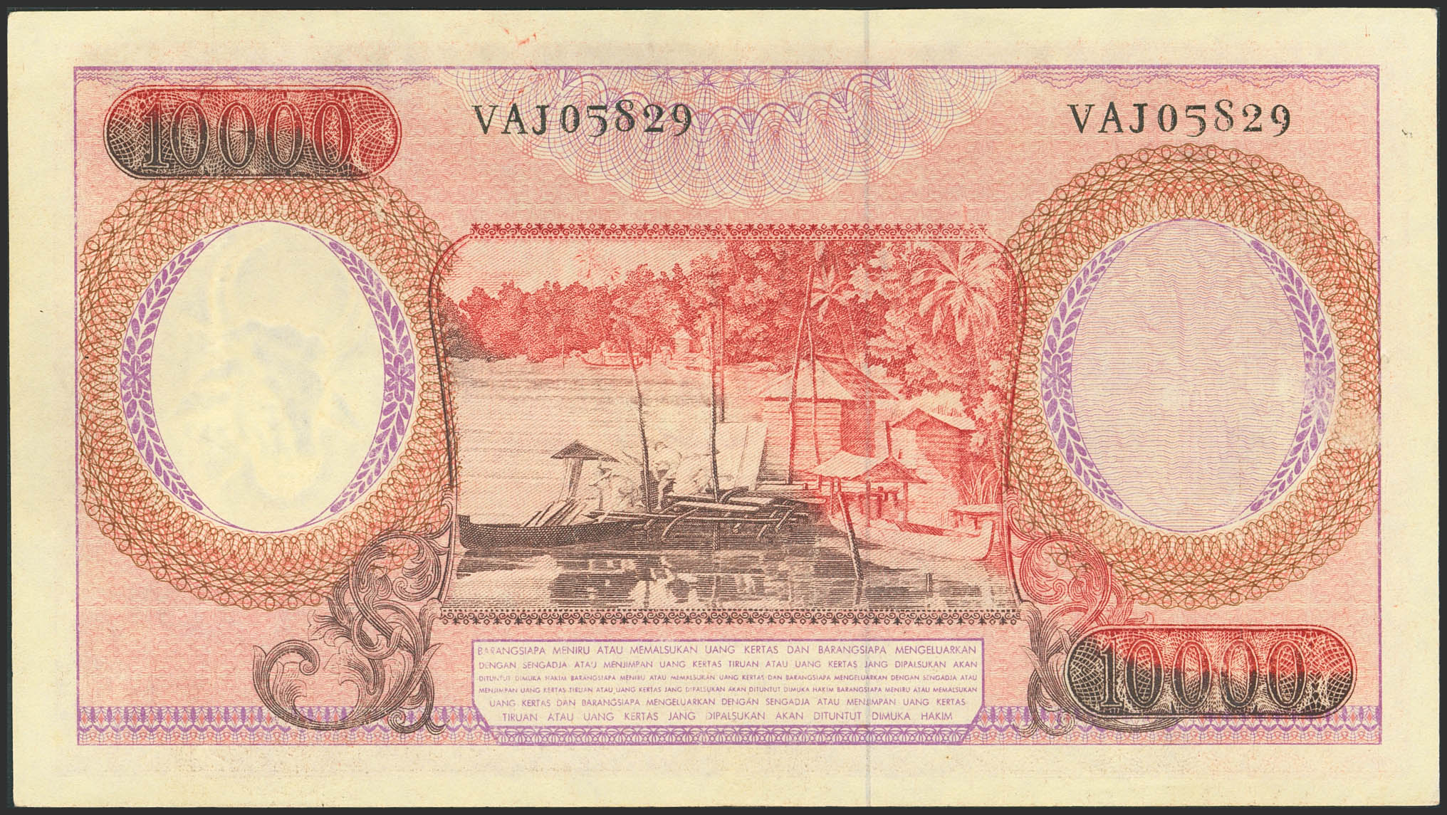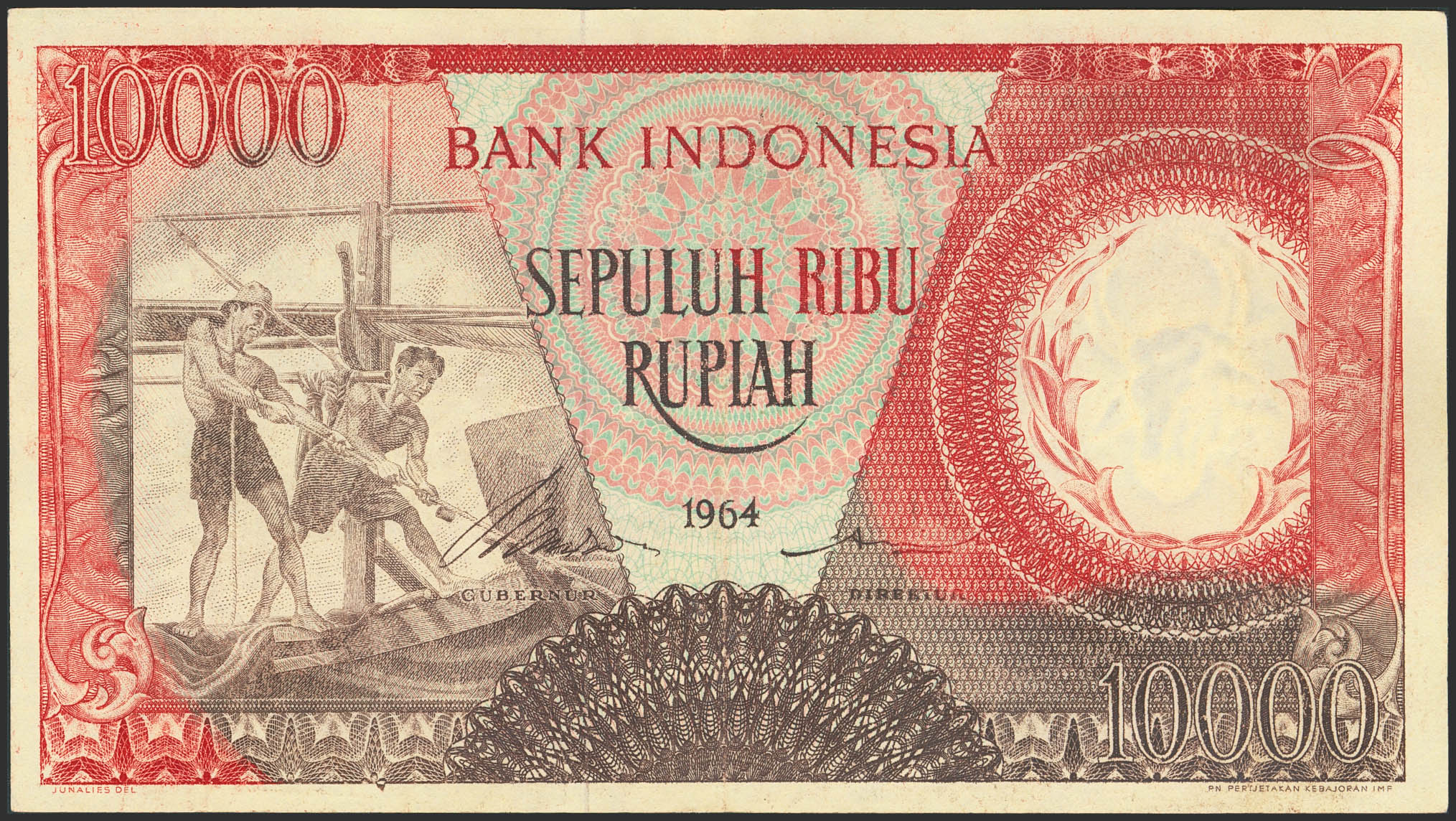 INDONESIA. 10000 Rupiah. 1964. Bank Indonesia. (Pick: 99). More than Extremely Fine, staple holes.