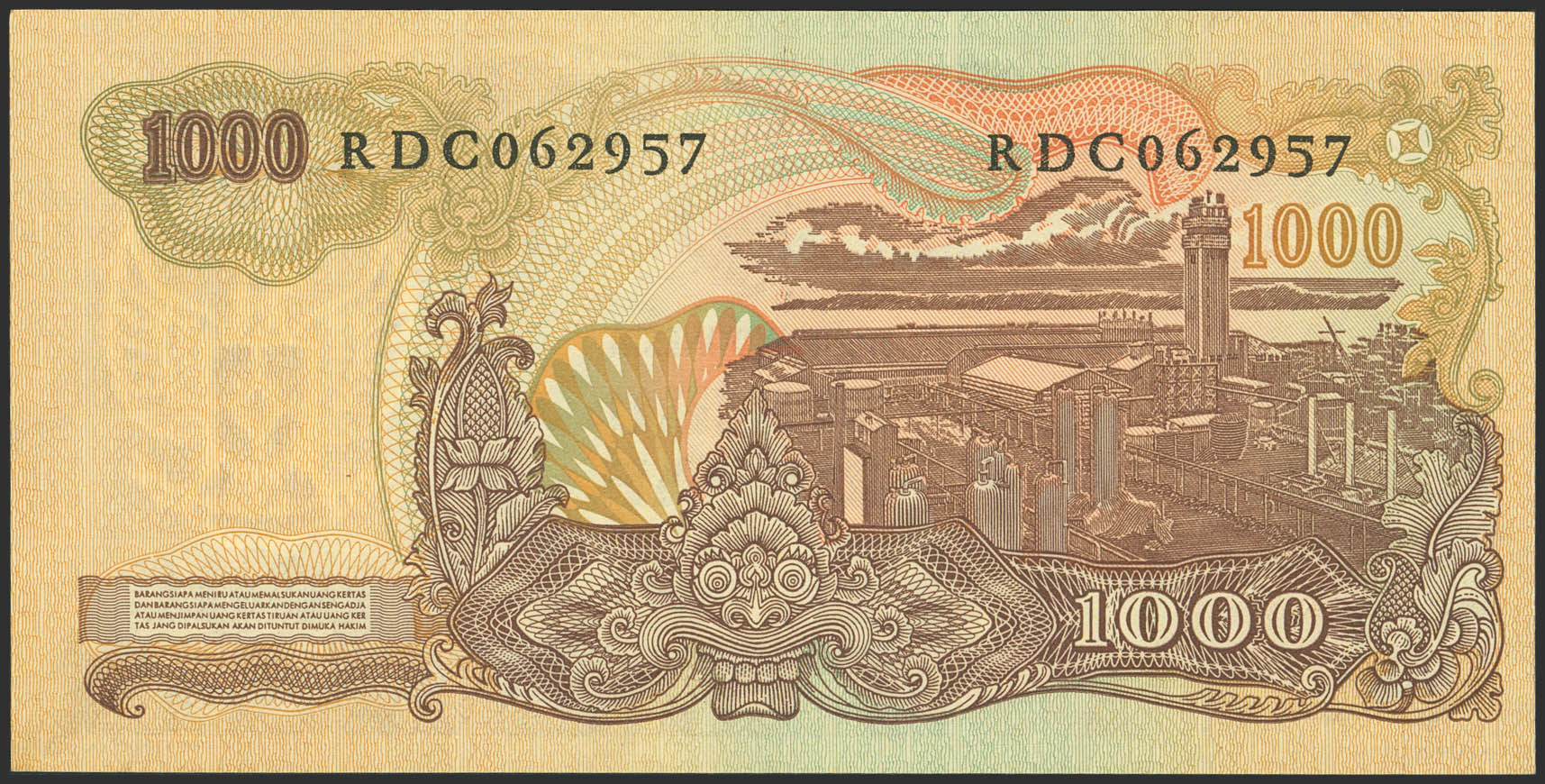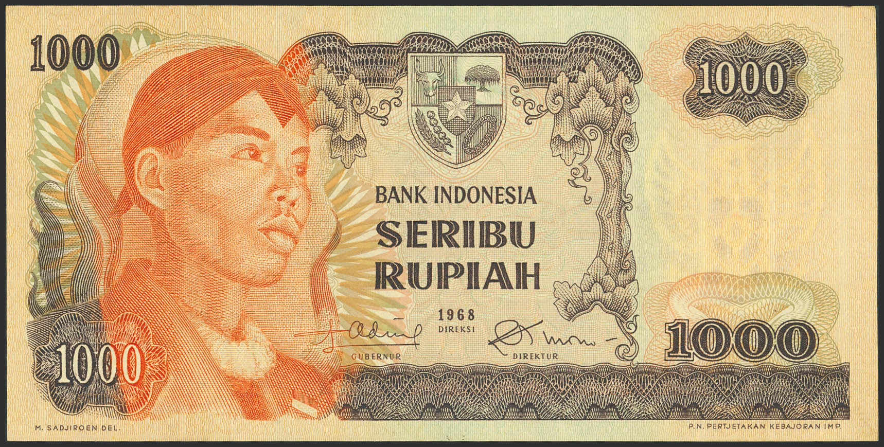INDONESIA. 1000 Rupiah. 1968. Bank Indonesia. (Pick: 110a). Less than Uncirculated.
