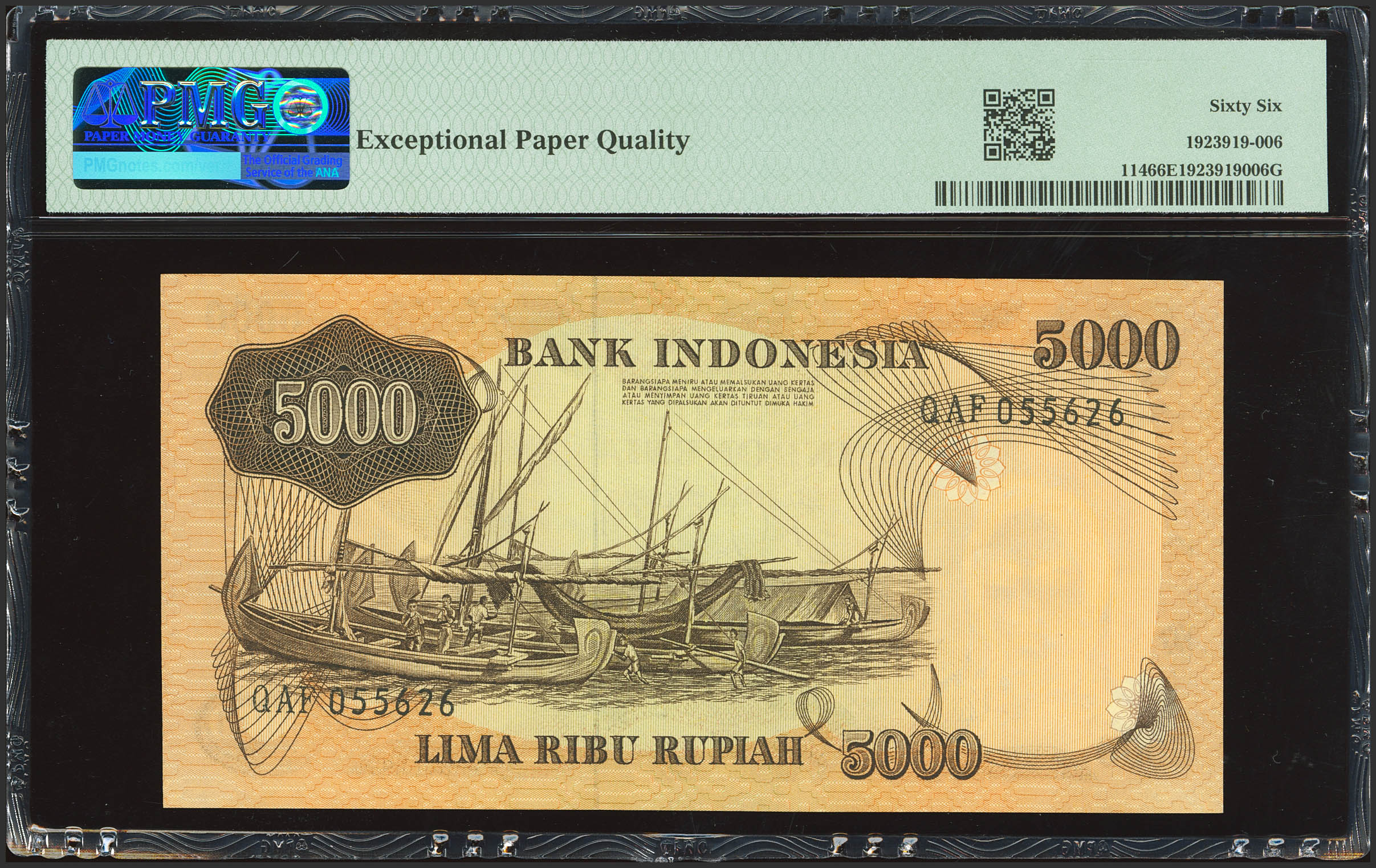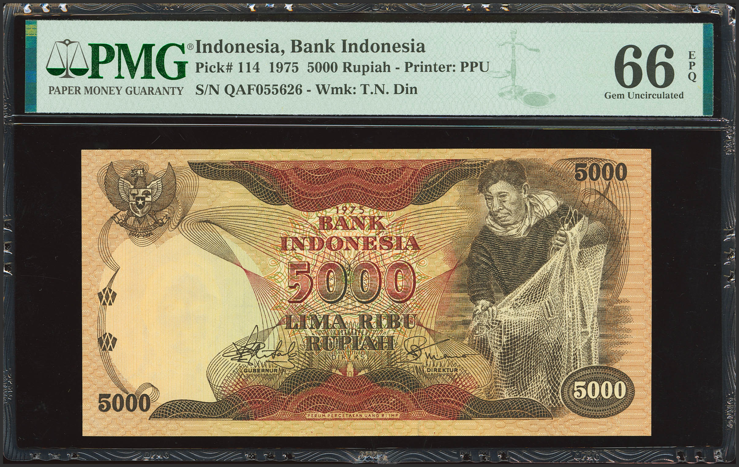 INDONESIA. 5000 Rupiah. 1975. Bank Indonesia. (Pick: 114). PMG64EPQ.