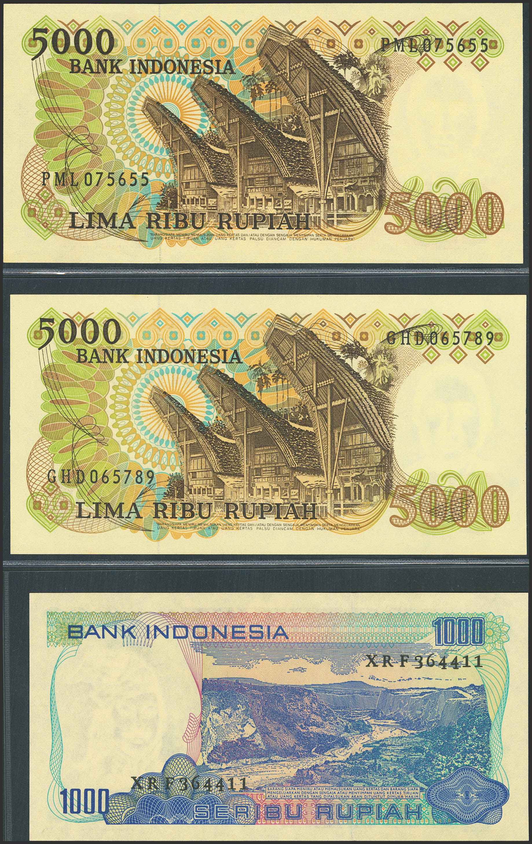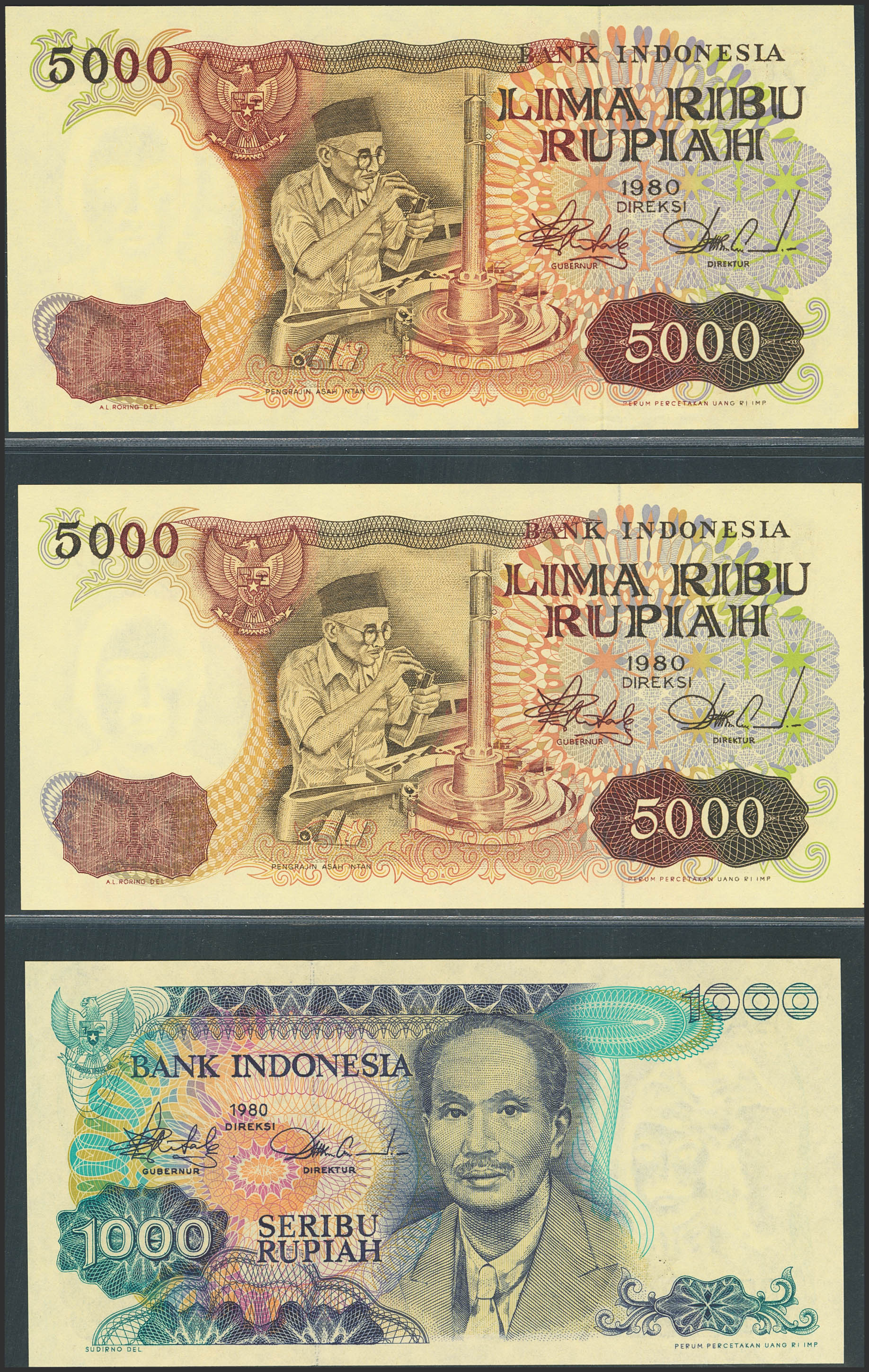 INDONESIA. Lot of 3 notes of 1000 and 5000 Rupiah. 1980. Bank Indonesia. (Pick: 119(1), 120(2)). Uncirculated.