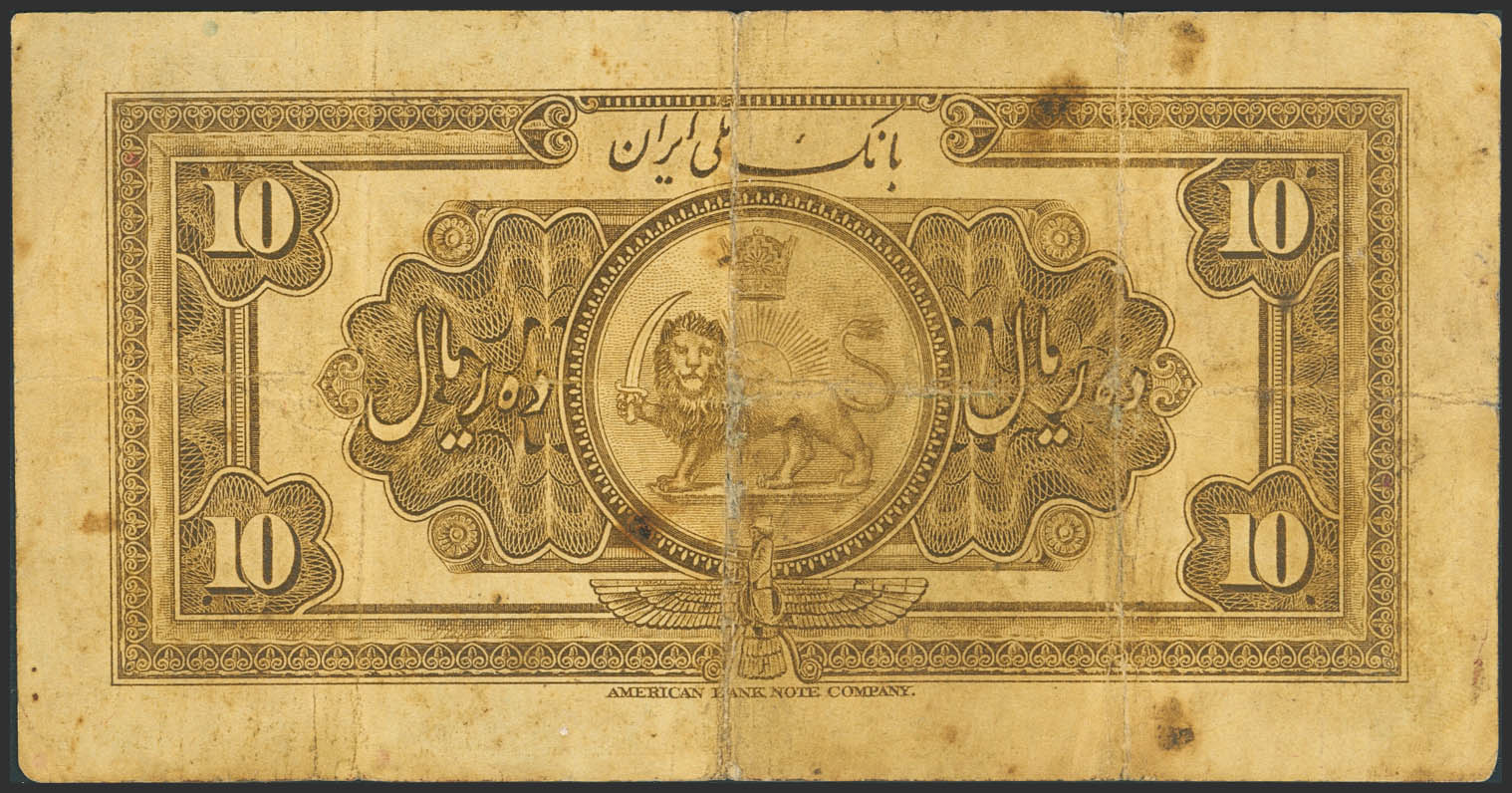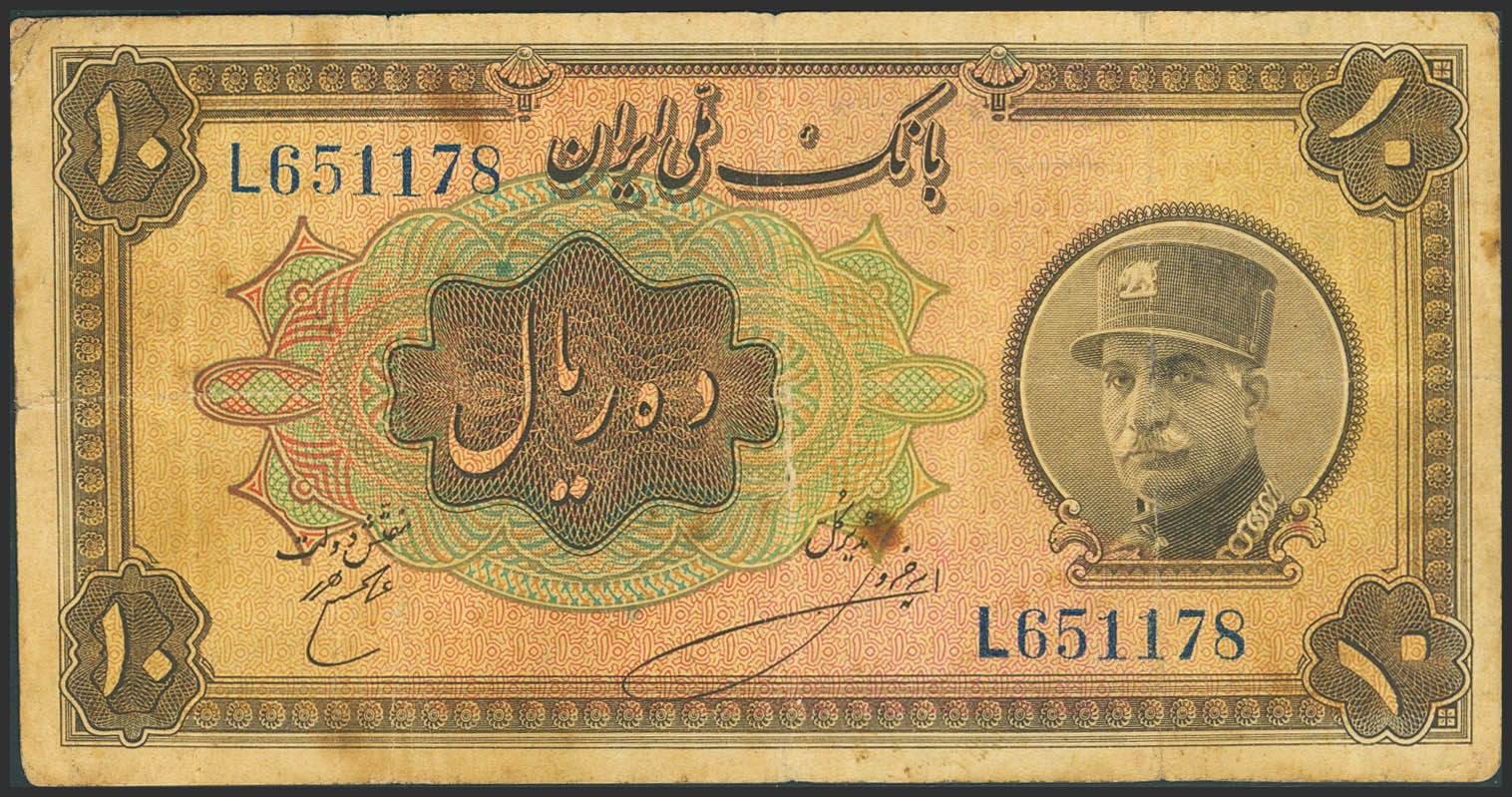 IRAN. 10 Rials. (1932ca). Bank Melli Iran. (Pick: 25b). Stains, pinhole. Very Fine.