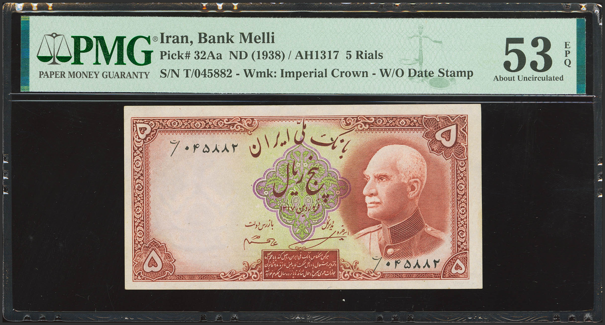 IRAN. 5 Rials. (1938ca). Bank Melli Iran. (Pick: 32Aa). PMG53EPQ.