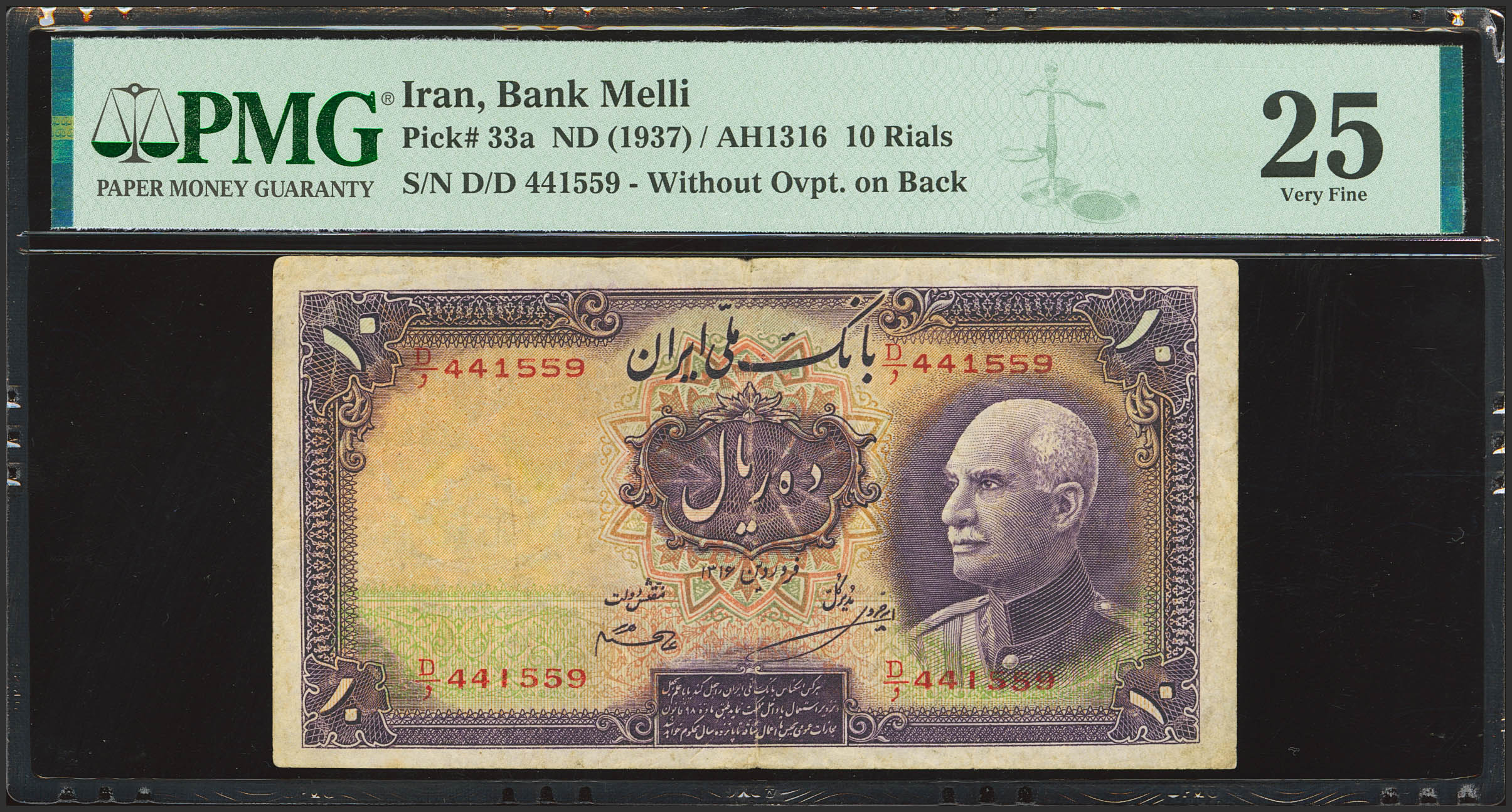 IRAN. 10 Rials. (1937ca). Bank Melli Iran. SH1316. (Pick: 33a). PMG25.