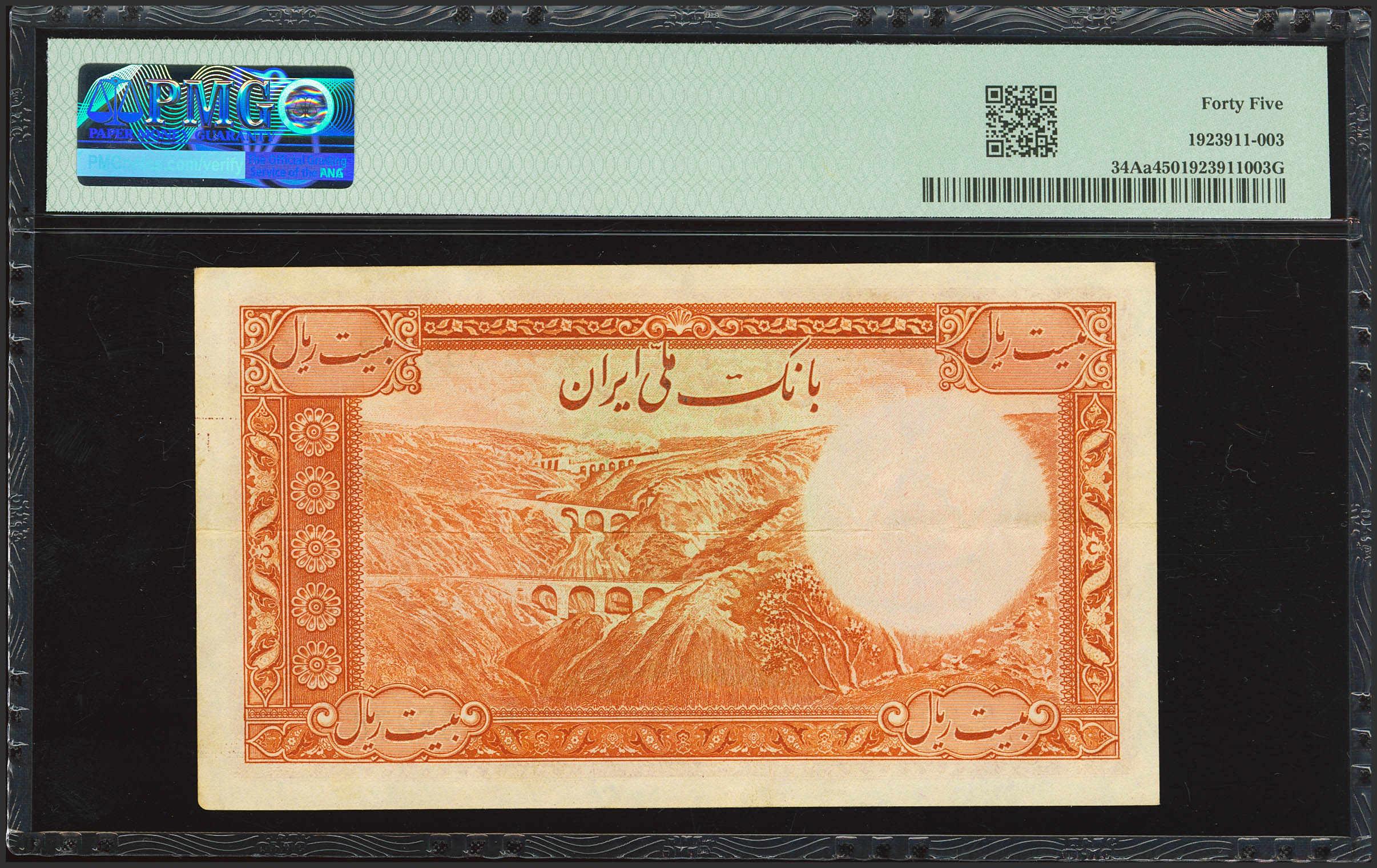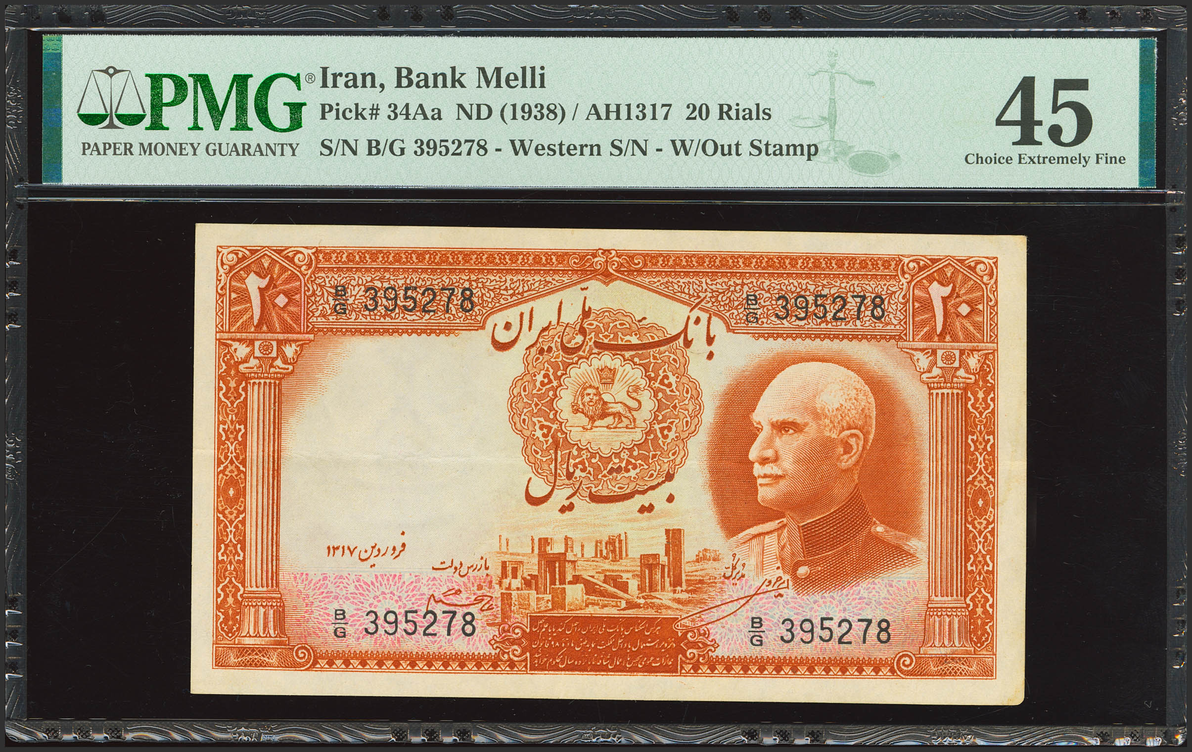 IRAN. 20 Rials. (1938ca). Bank Melli Iran. SH1317. (Pick: 34Aa). PMG45.