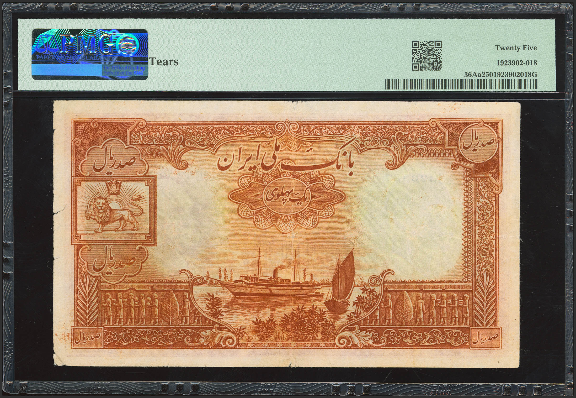 IRAN. 100 Rials. (1938ca). Bank Melli Iran. SH1317. (Pick: 36Aa). PMG25 (tears).