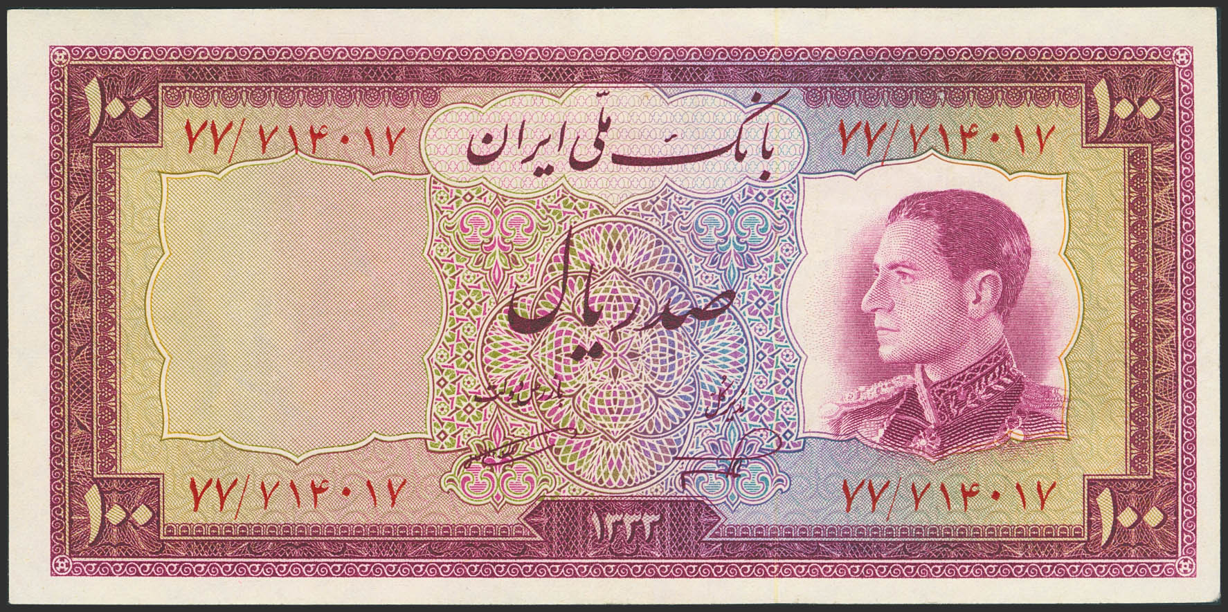 IRAN. 100 Rials. (1954ca). Bank Melli Iran. (Pick: 67). Extremely Fine.