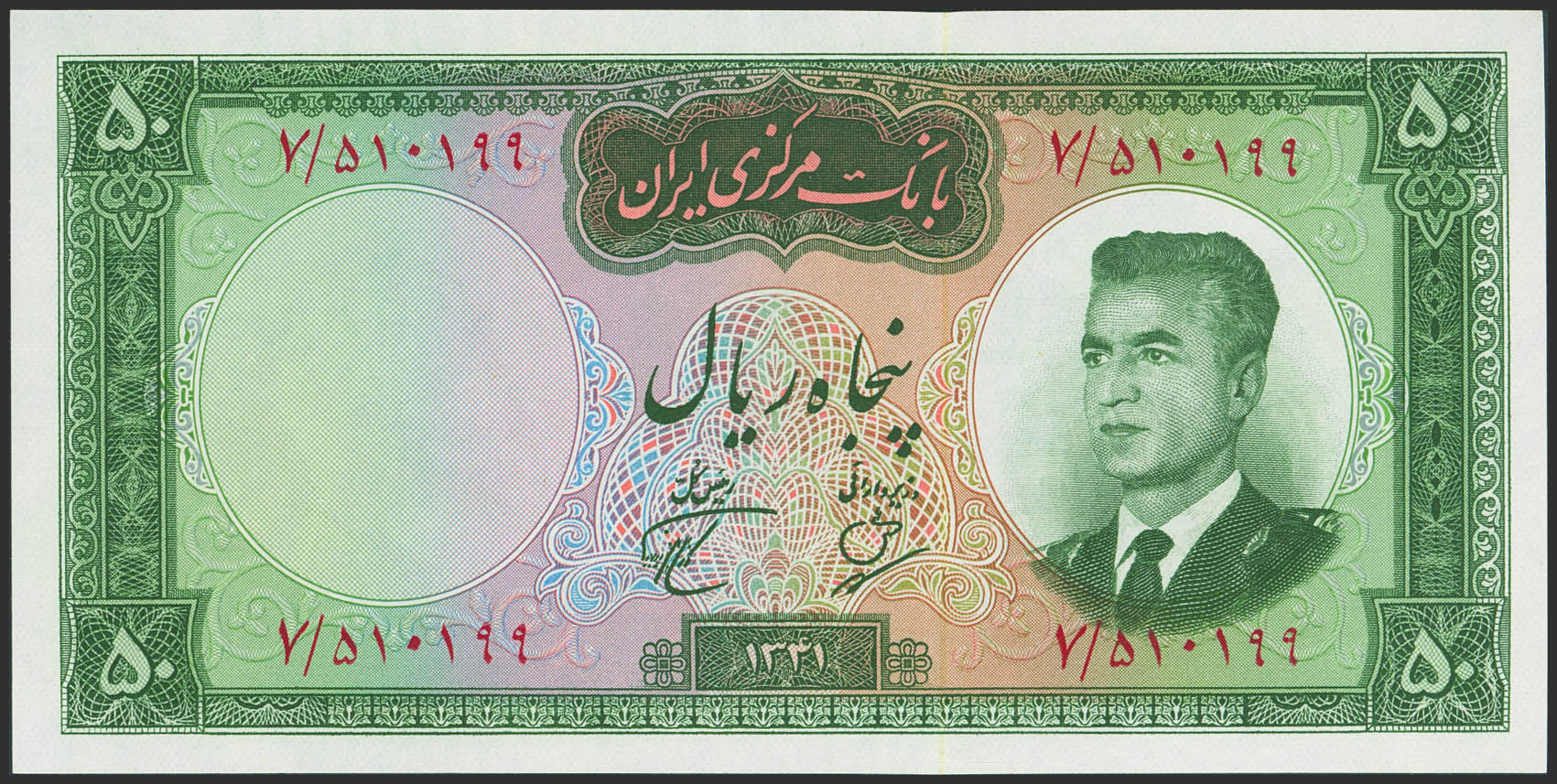 IRAN. 50 Rials. (1962ca). Bank Markazi Iran. (Pick: 73a). Uncirculated.