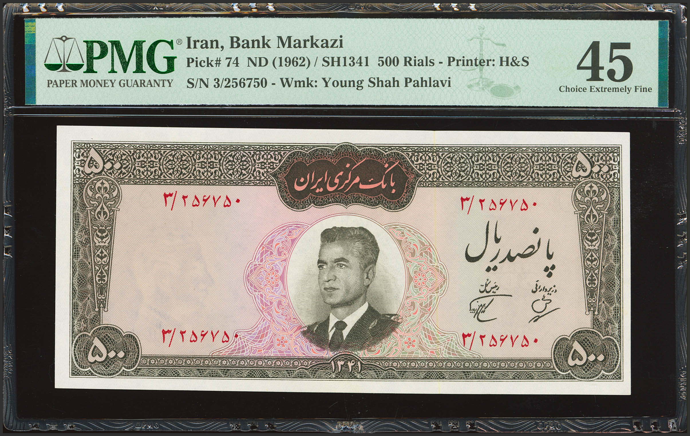 IRAN. 500 Rials. (1962ca). Bank Markazi Iran. (Pick: 74). PMG45