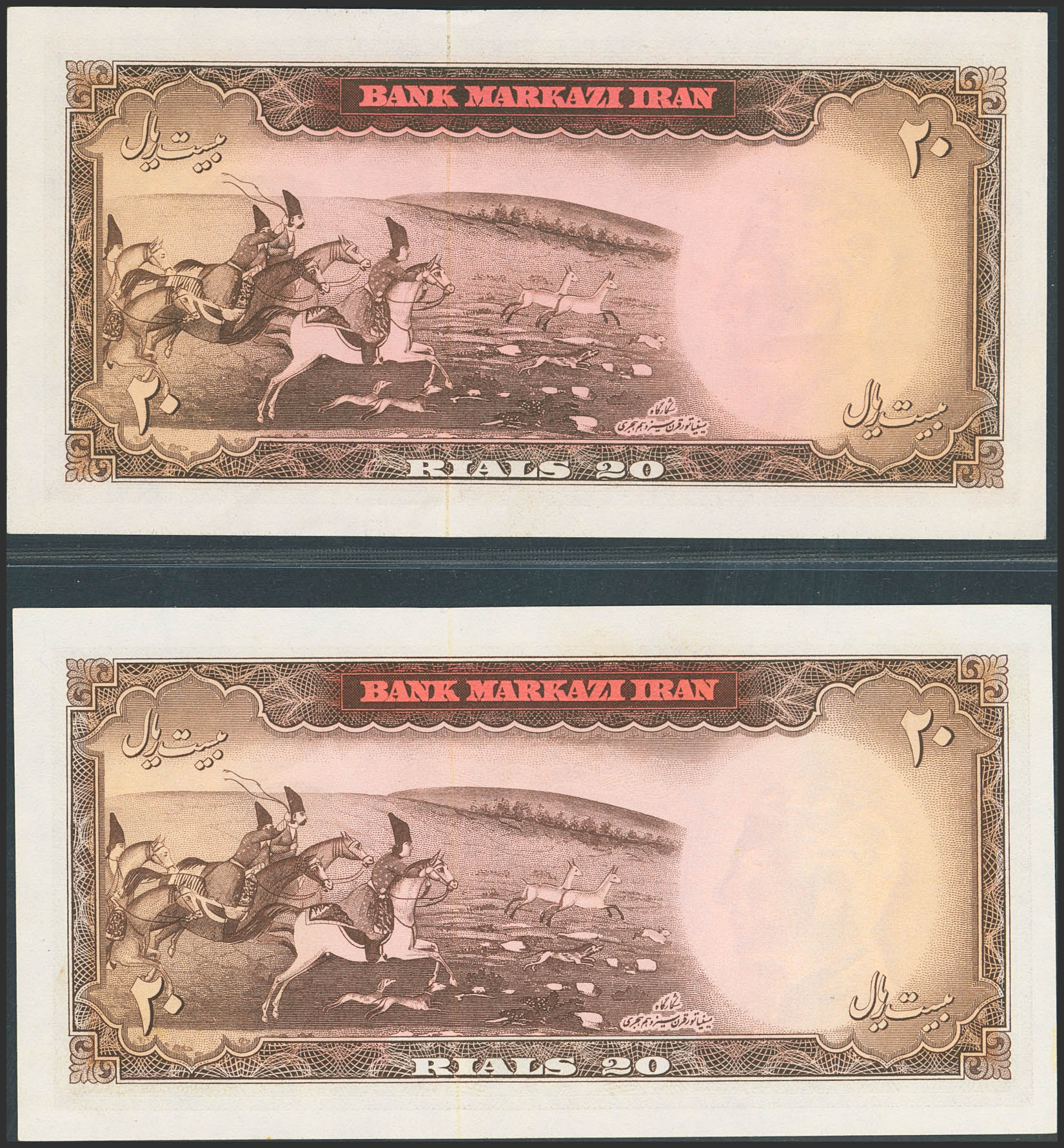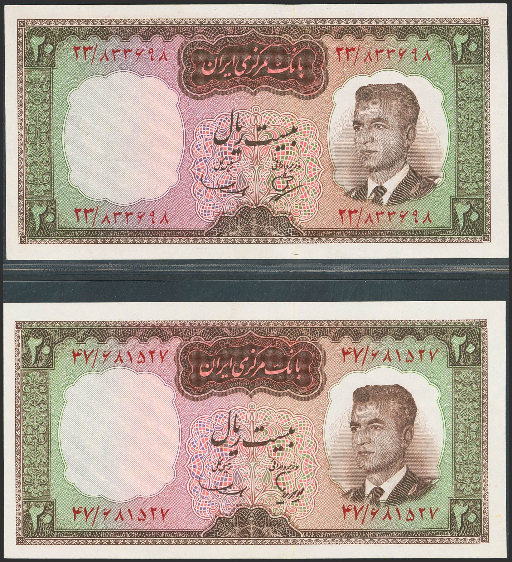 IRAN. 20 Rials. (1965ca). Bank Markazi Iran. (Pick: 78a, 78b). Almost Uncirculated and Less than Uncirculated