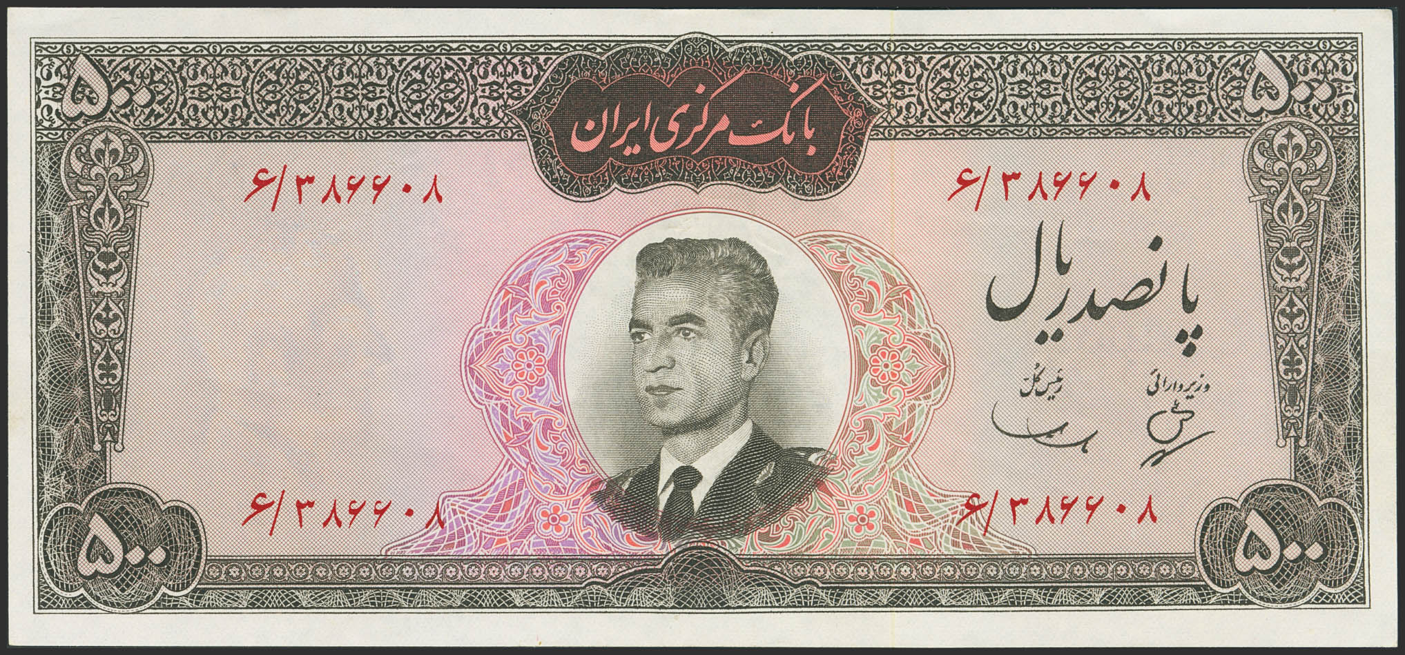 IRAN. 500 Rials. (1965ca). Bank Markazi Iran. (Pick: 82). More than Extremely Fine.