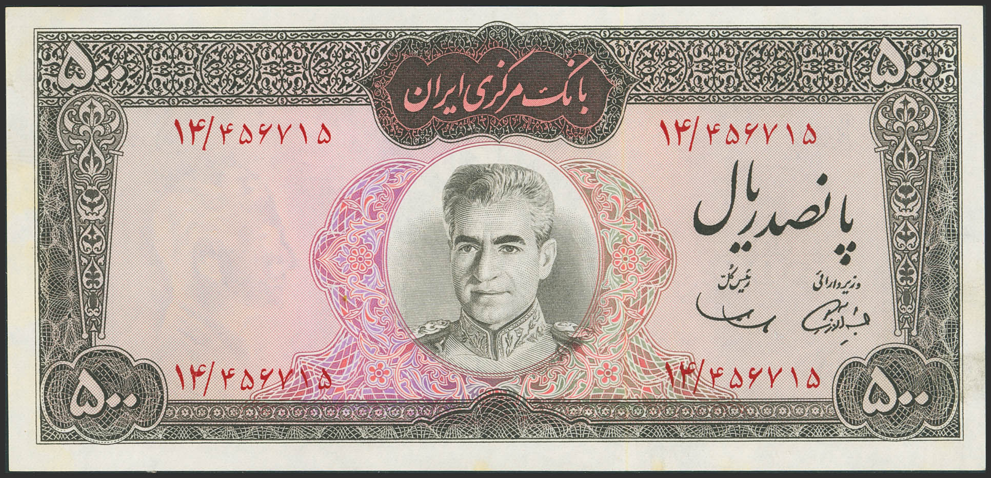 IRAN. 500 Rials. (1969ca). Bank Markazi Iran. (Pick: 88). Uncirculated.