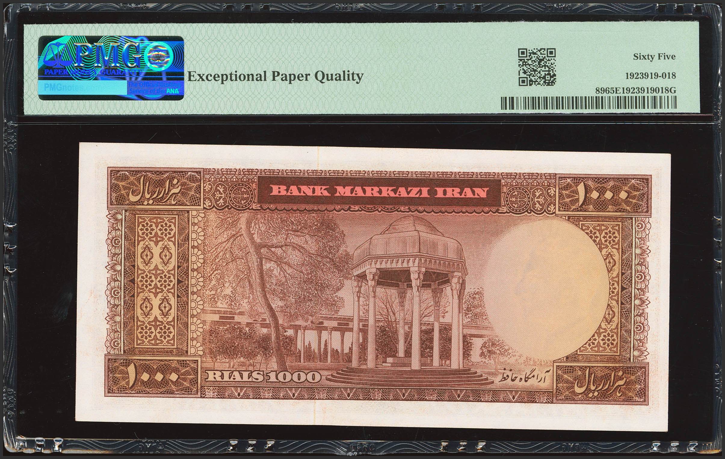 IRAN. 1000 Rials. (1971ca). Bank Markazi Iran. (Pick: 89). PMG65EPQ.