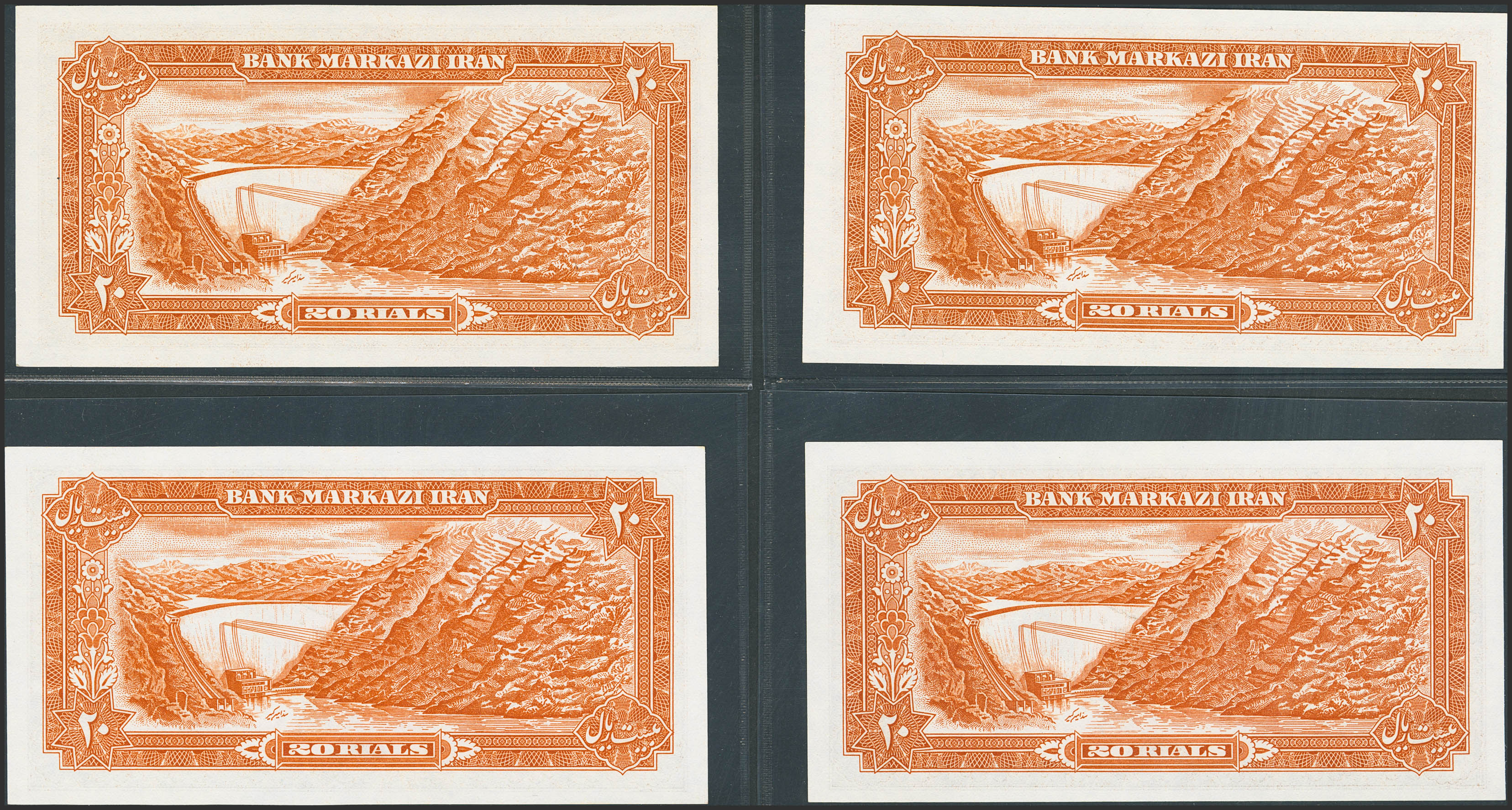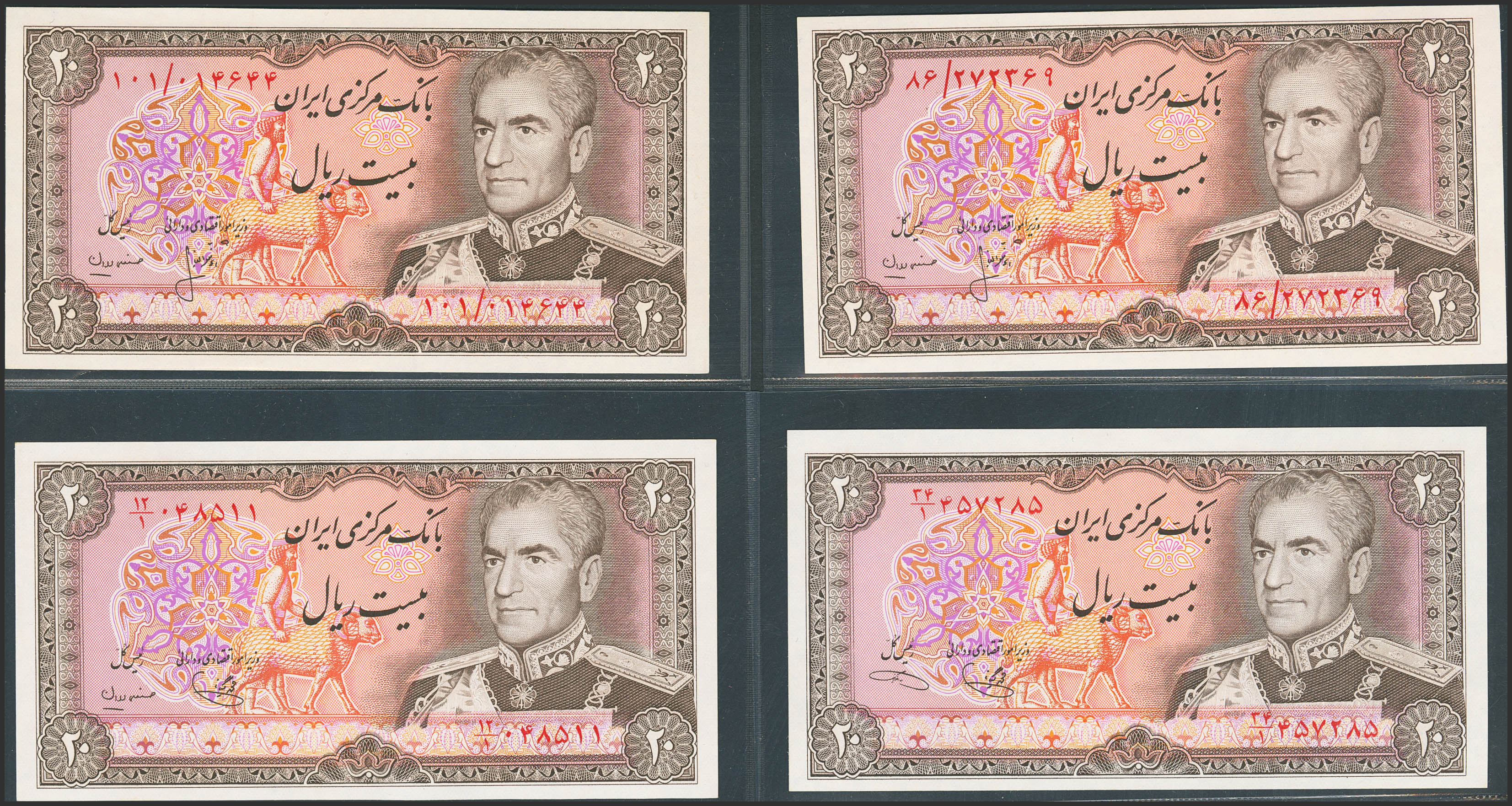 IRAN. Lot of 4 notes of 20 Rials. (1974ca). Bank Markazi Iran. (Pick: 100a(2), 100b, 100c). Uncirculated.