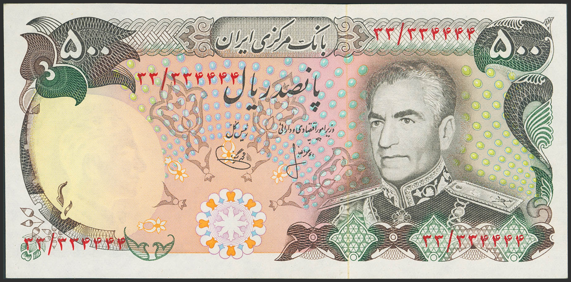 IRAN. 500 Rials. (1974ca). Bank Markazi Iran. (Pick: 104a). Uncirculated.