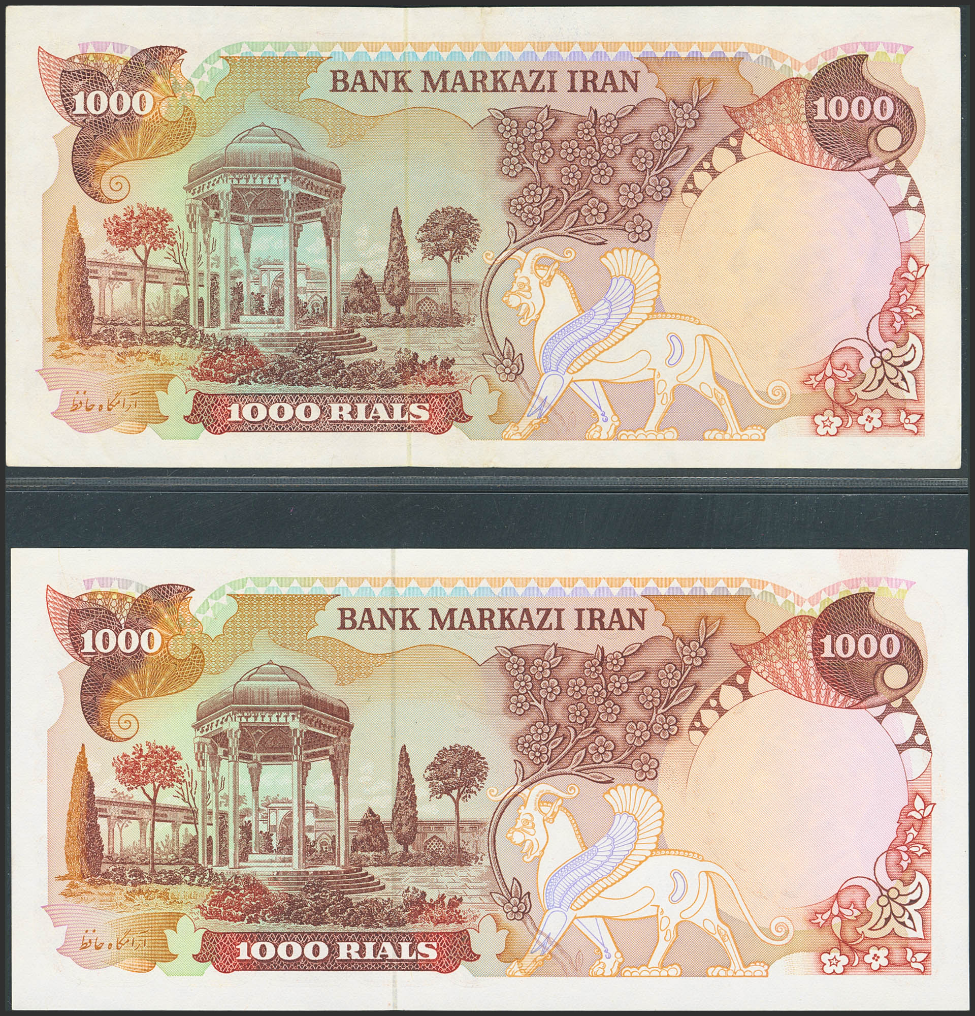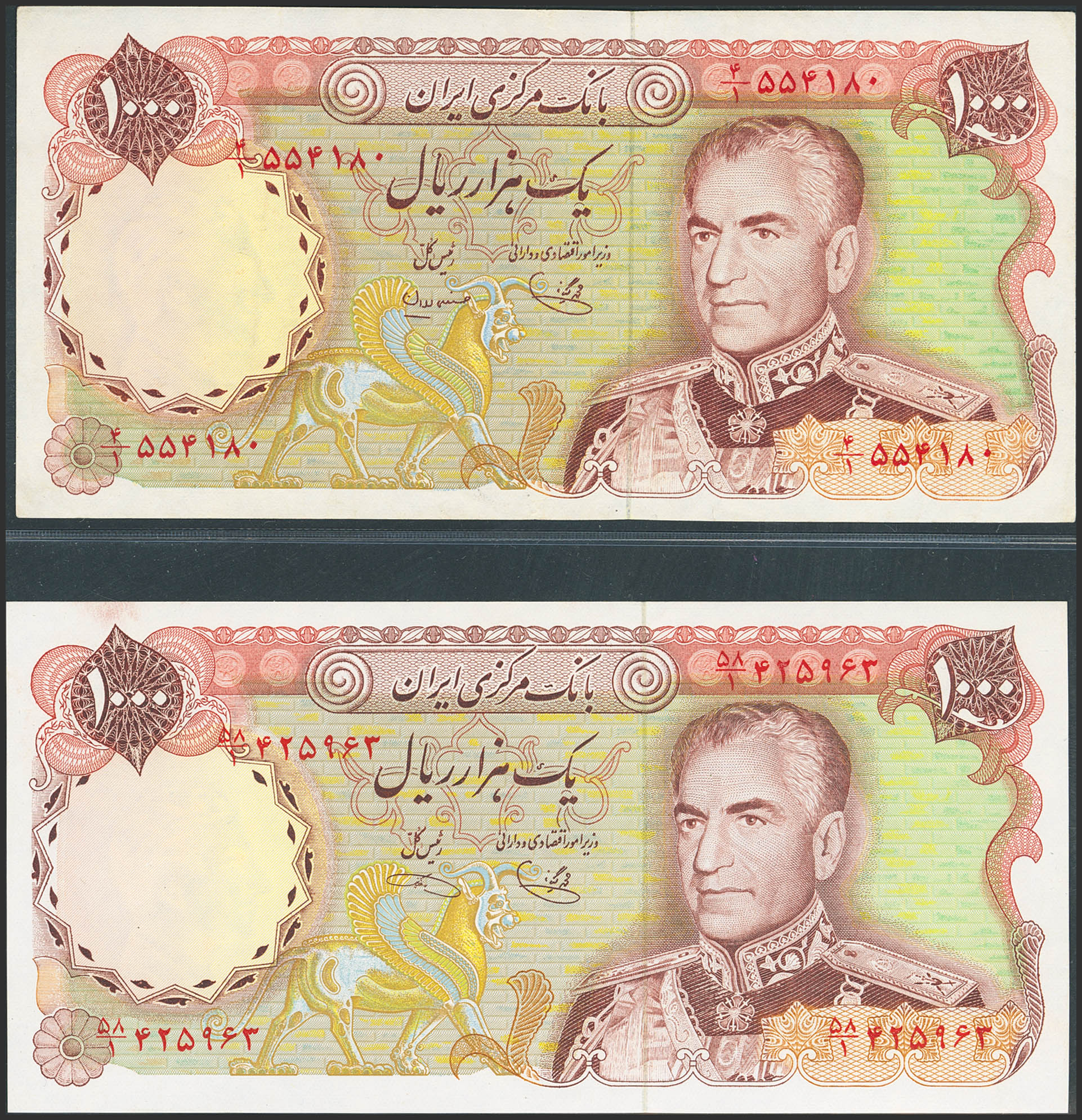 IRAN. Lot of 2 notes of 1000 Rials. (1974ca). Bank Markazi Iran. (Pick: 105c, 105d). Almost Uncirculated and Less than Uncirculated.